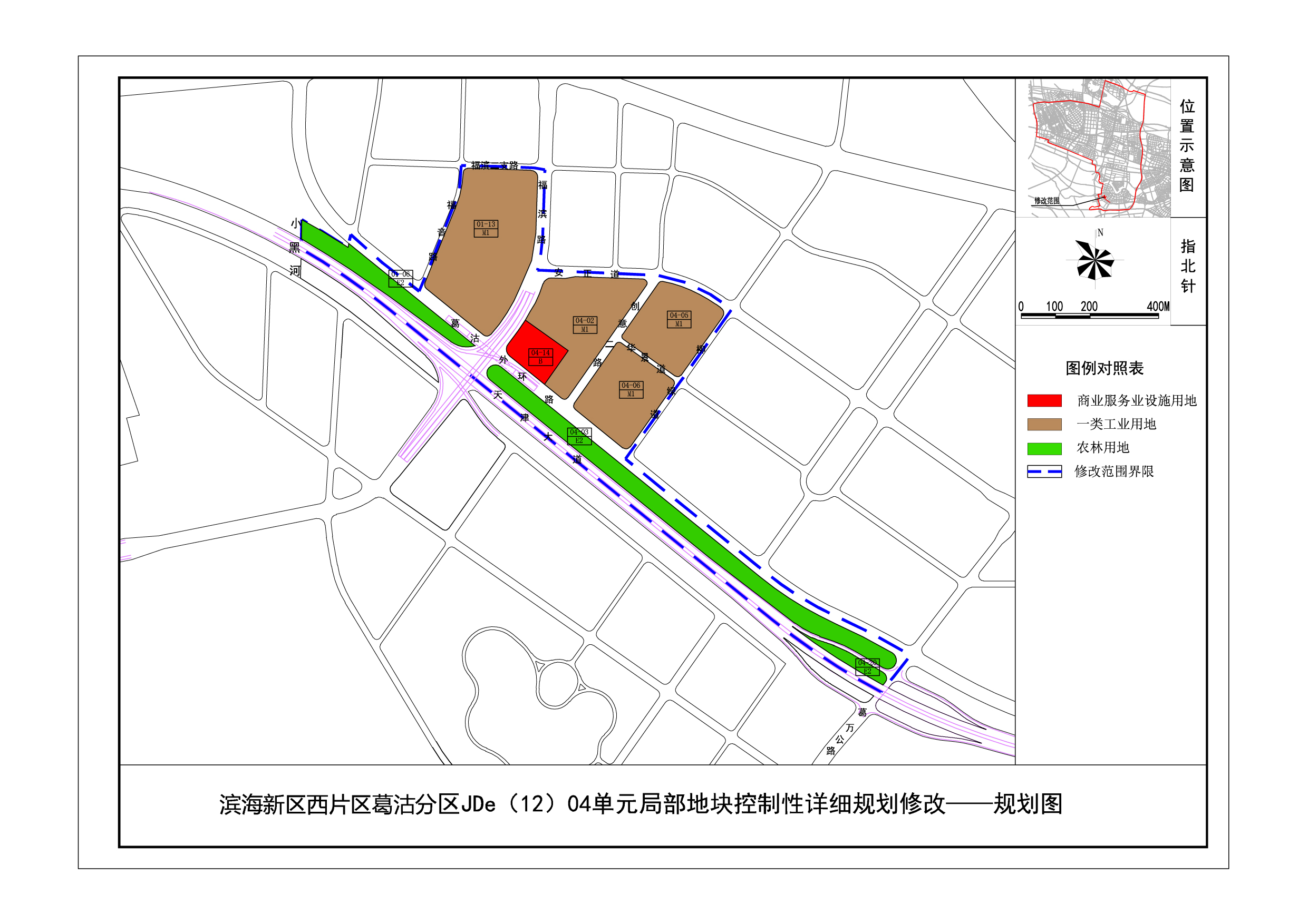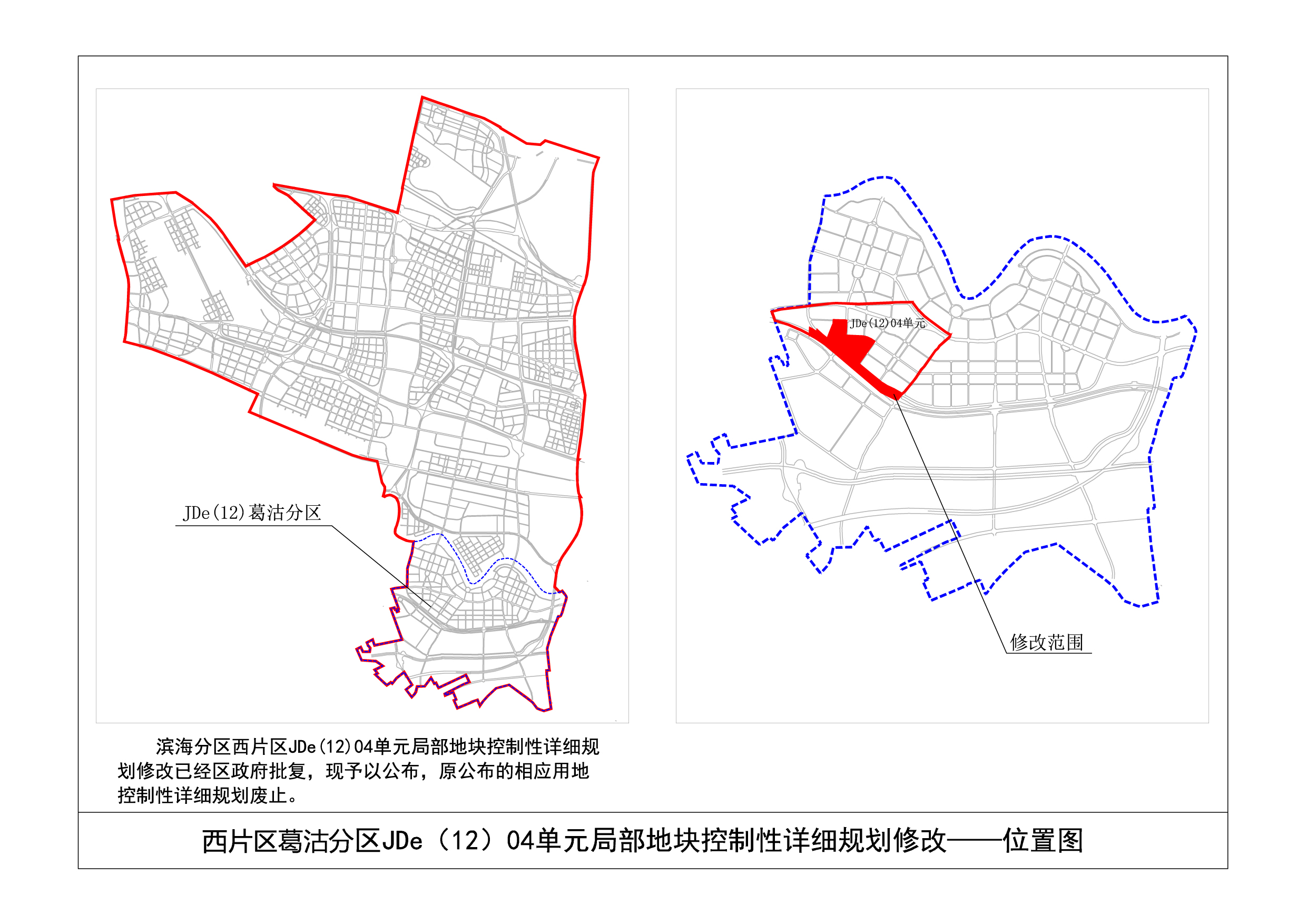 滨海新区西片区葛沽分区JDe(12)04单元局部地块控制性详细规划修改公布