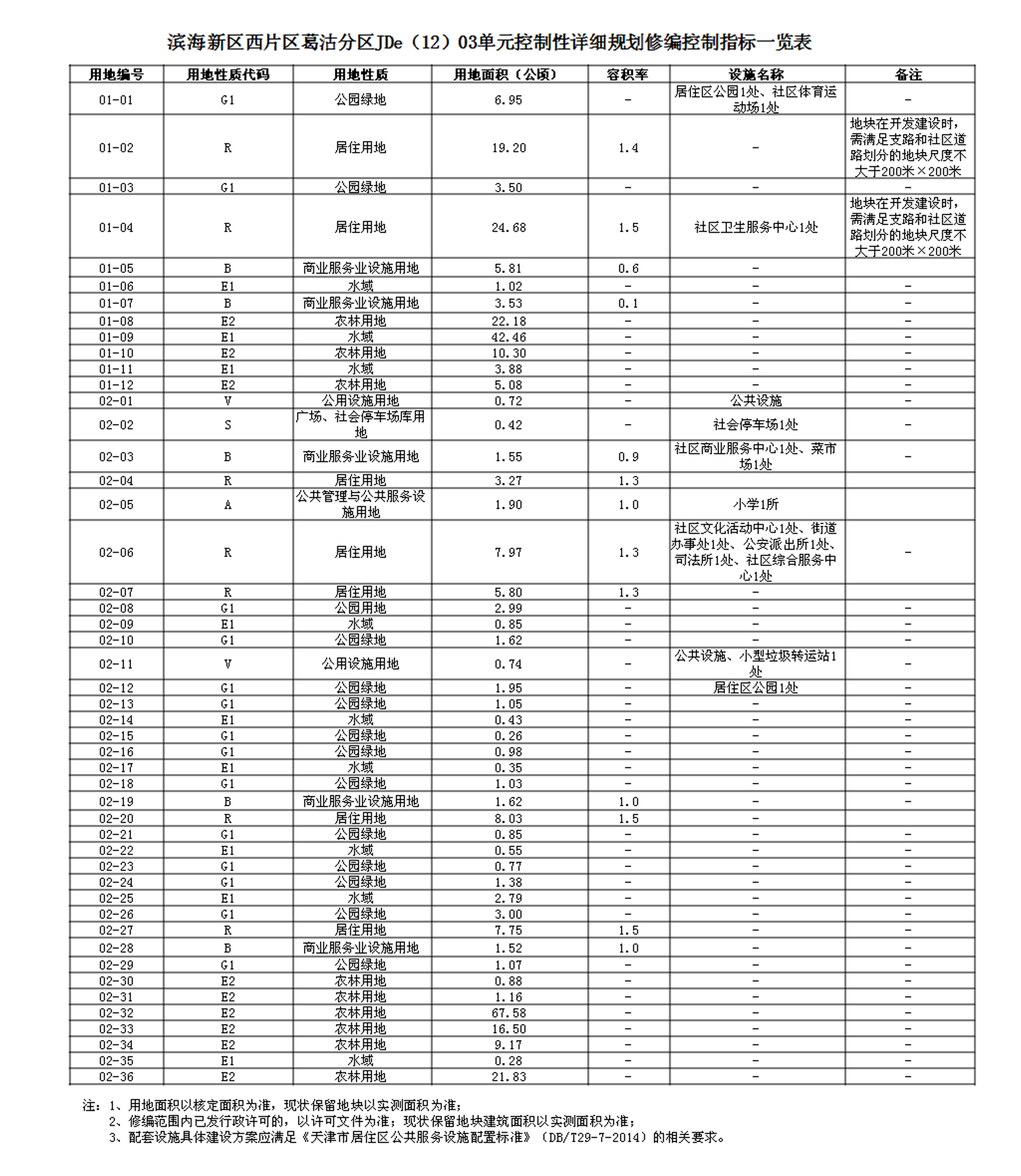 滨海新区西片区葛沽分区JDe(12)03单元控制性详细规划修编公布