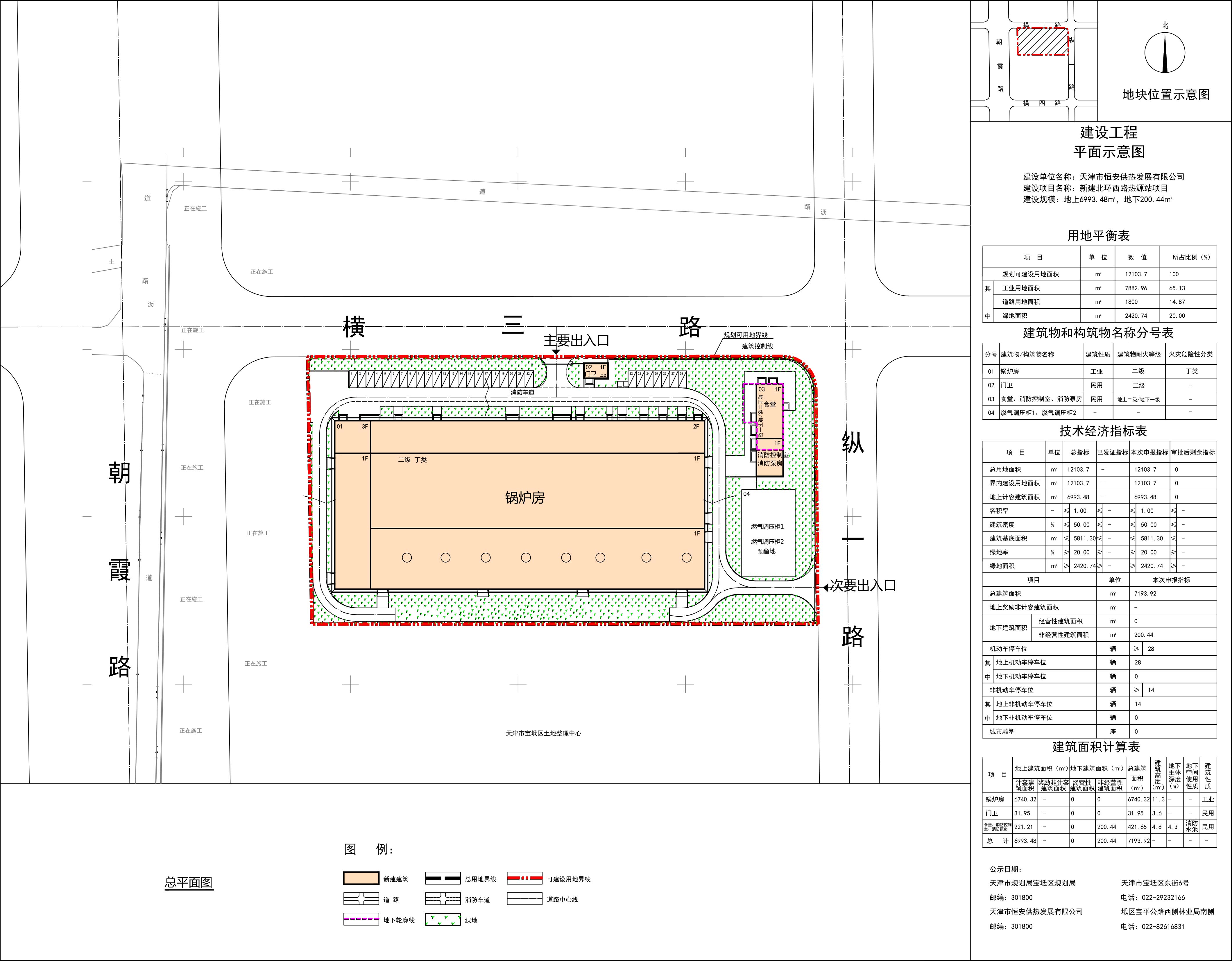 天津市恒安供热发展有限公司申请的新建北环西路热源站锅炉房、门卫、食堂消防控制室消防泵房项目建设工程设计方案总平面图公布