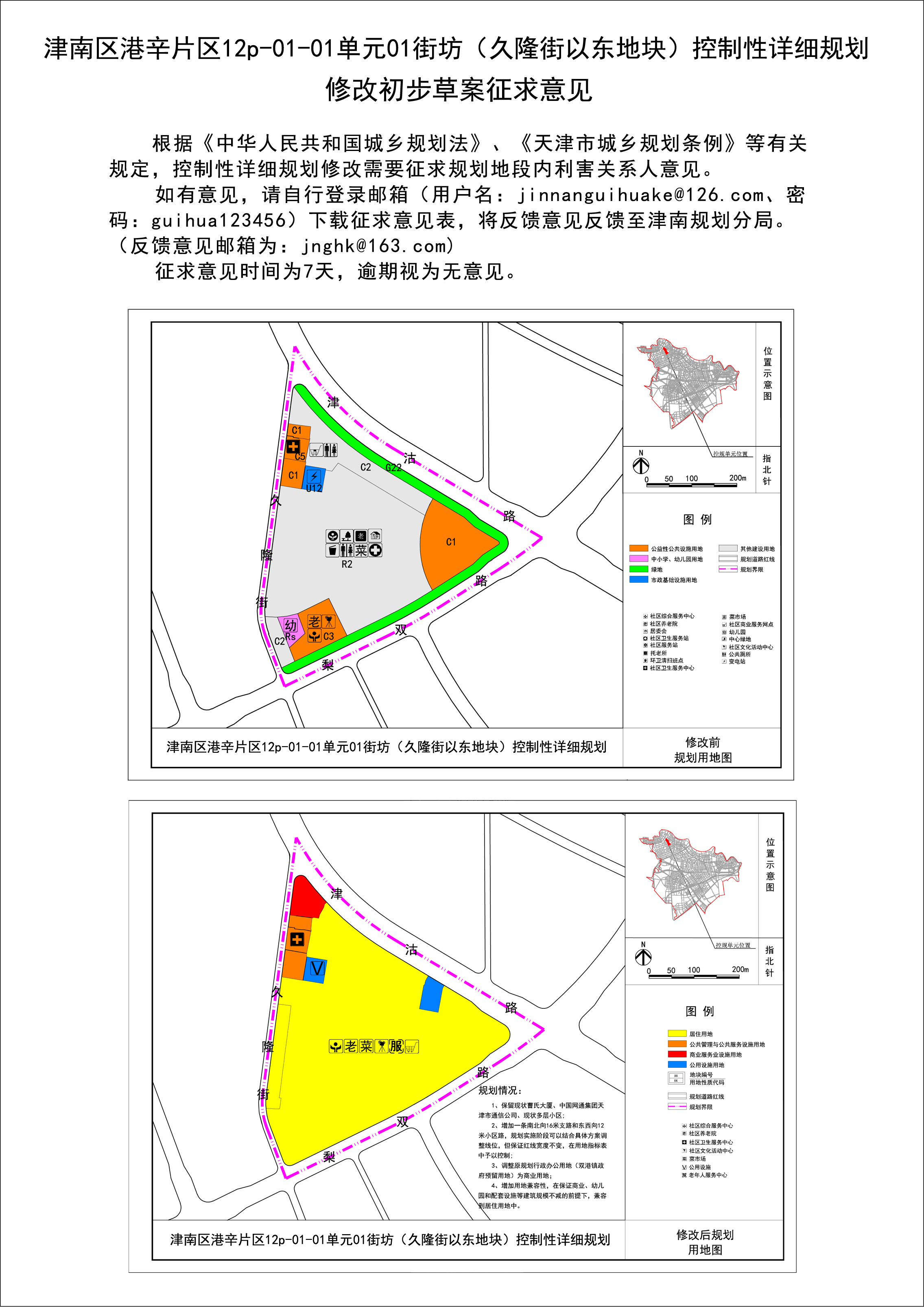 津南区港辛片区12p-01-01单元01街坊(久隆街以东地块)控制性详细规划修改初步草案征求意见