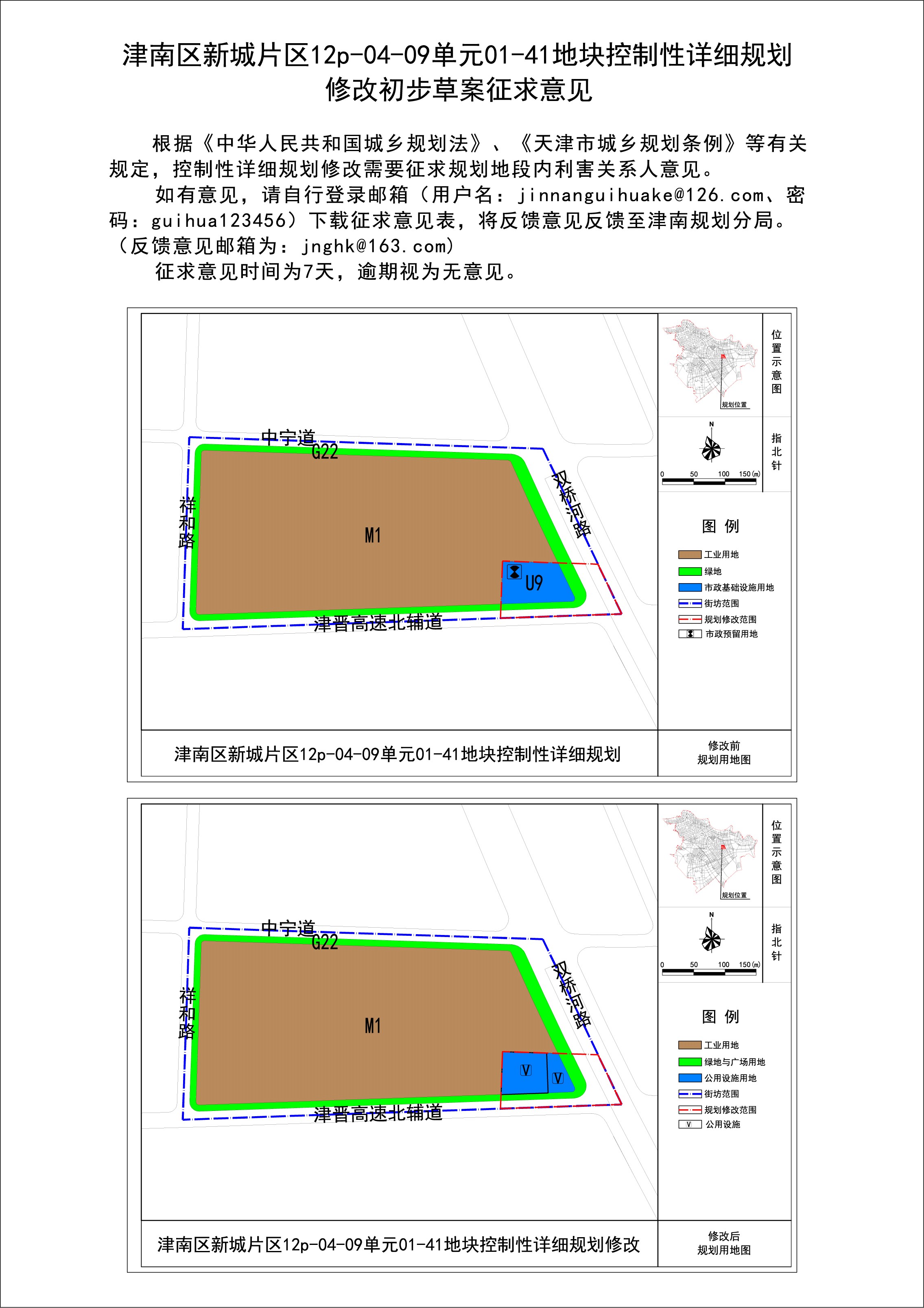 津南区新城片区12p-04-09单元01-41地块控制性详细规划修改初步草案征求意见