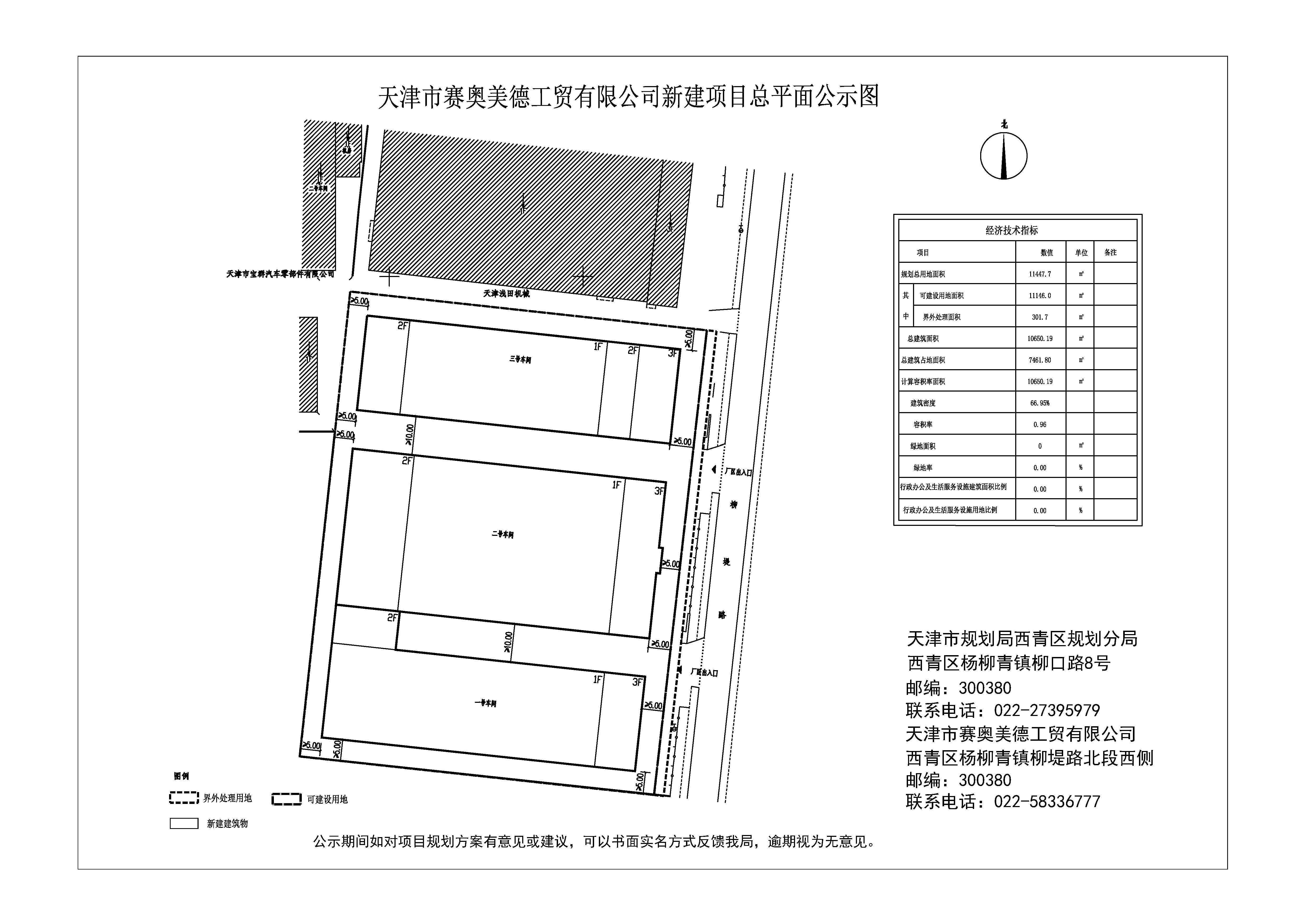 依据《中华人民共和国城乡规划法》和《关于印发<天津市城乡规划公开实施方案>的通知》的有关要求,现将天津市赛奥美德工贸有限公司新建项目总平面图进行公示,公示时间为7个工作日。