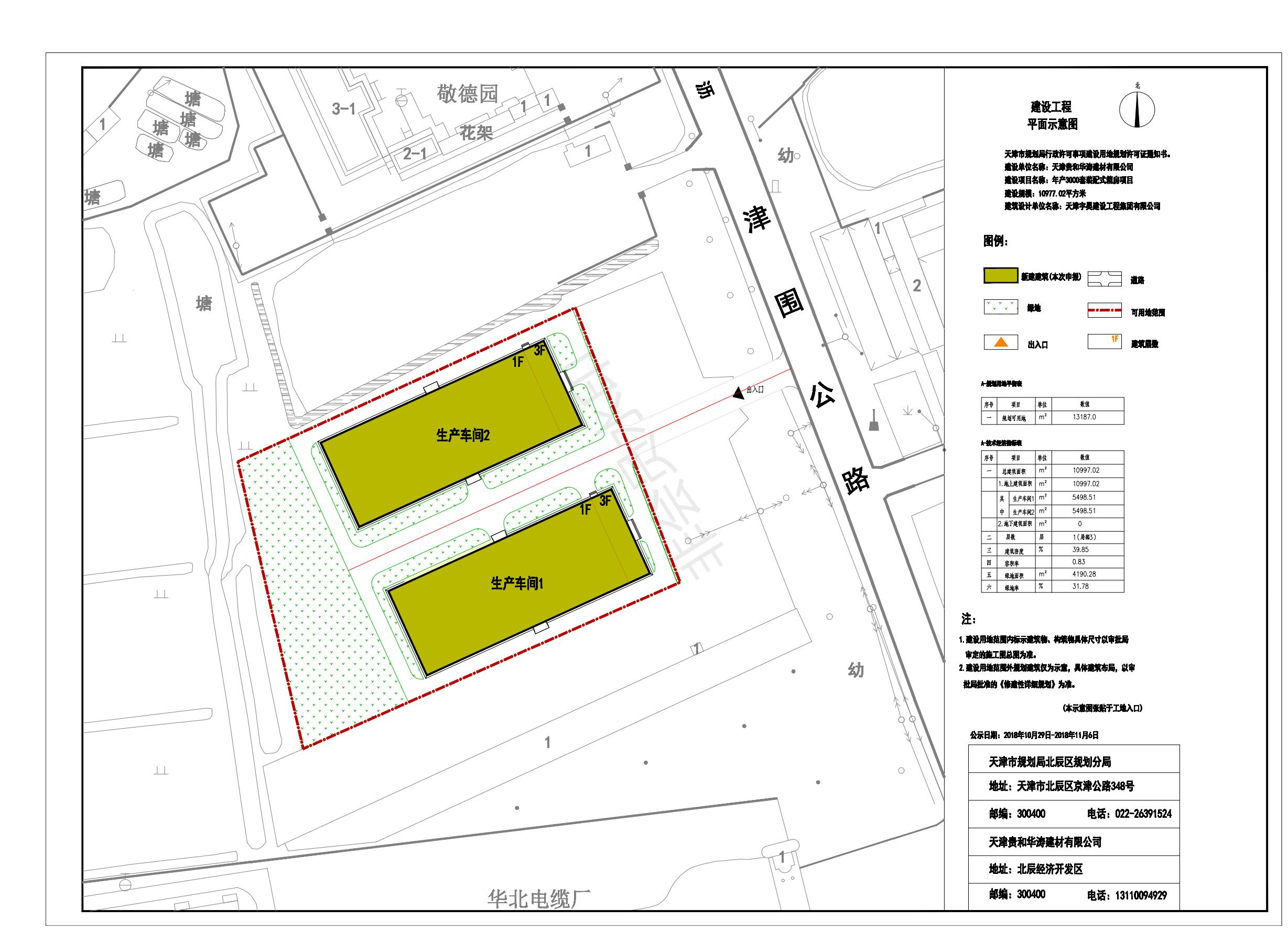 北辰区 天津贵和华涛建材有限公司天津贵和华涛建材有限公司新建厂房项目的建设工程规划许可证总平面图进行批前公示7个工作日