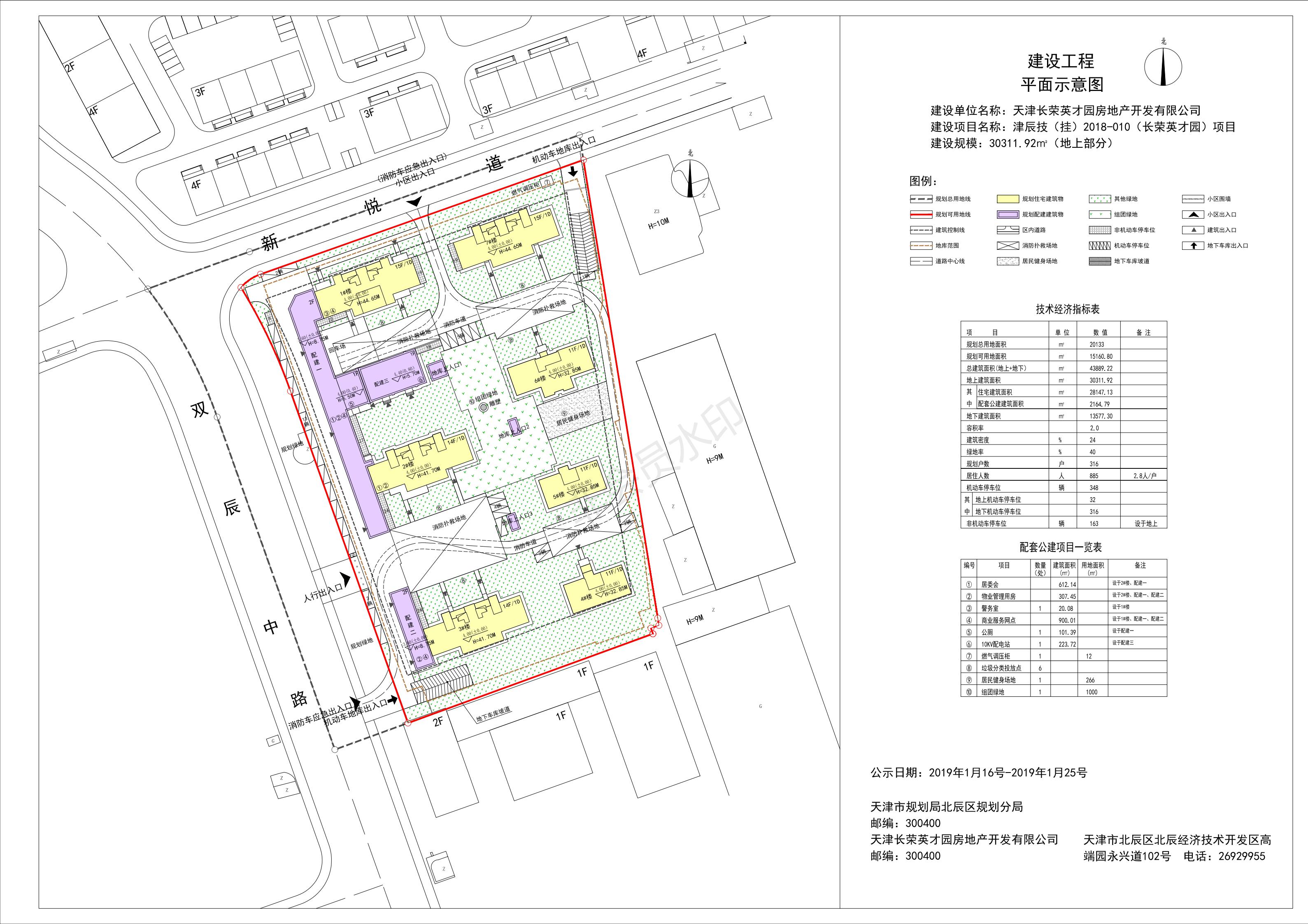 北辰区 天津长荣英才园房地产开发有限公司津辰技(挂)2018-010地块(长荣英才园)项目的建设工程规划许可证总平面图进行批前公示7个工作日