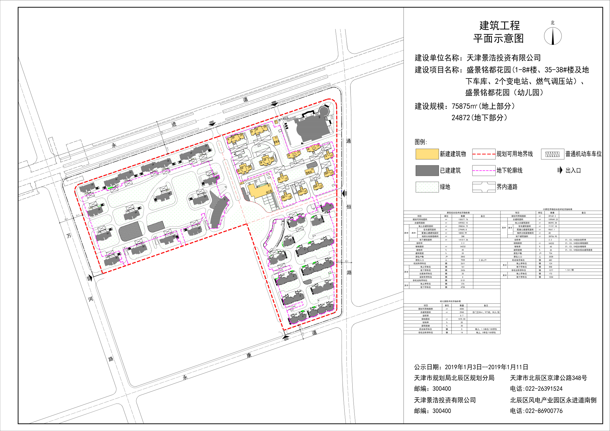 北辰区 天津景浩投资有限公司天津北辰科技园区生活配套服务项目居住部分(盛景铭都花园)C3地块的建设工程规划许可证总平面图进行批前公示7个工作日