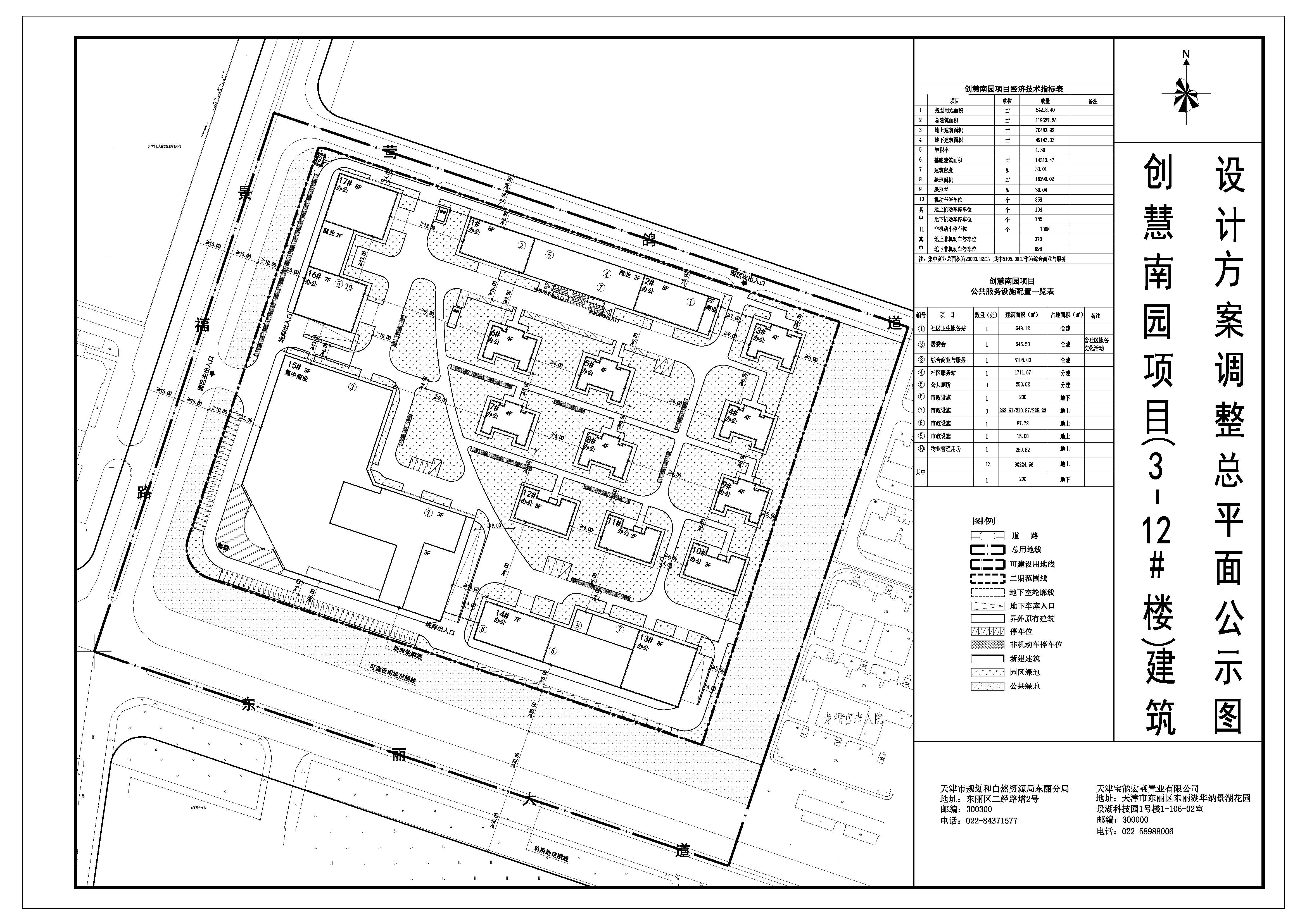 依据《中华人民共和国城乡规划法》的有关要求,现将天津宝能宏盛置业有限公司创慧南园(3#-12#)建筑设计方案调整总平面图进行公示,公示期为7个工作日。意见反馈请回复东丽分局建管科,电话:84371577。