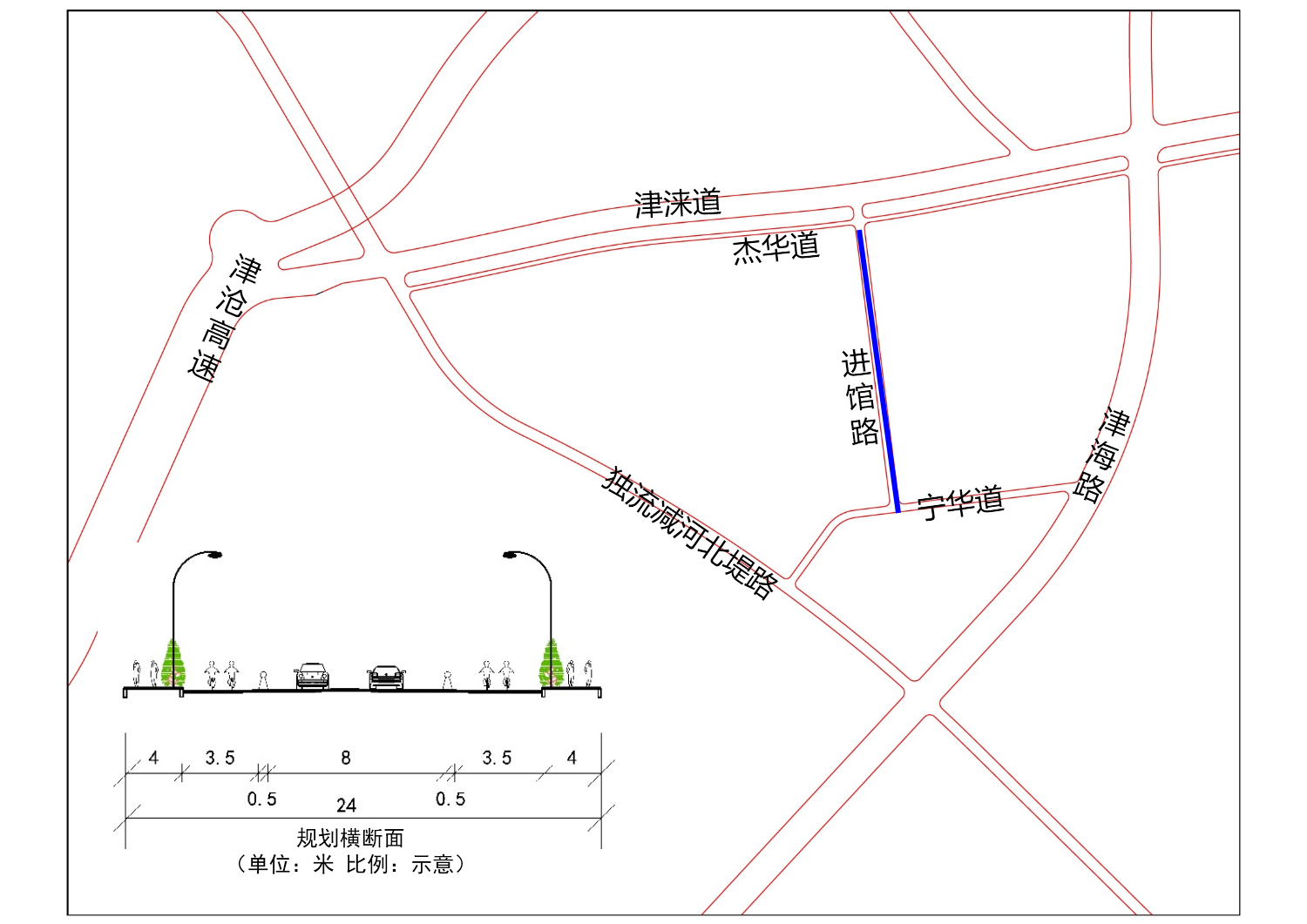 按照《中华人民共和国城乡规划法》、《天津市城乡规划条例》的要求,现将进馆路(杰华道