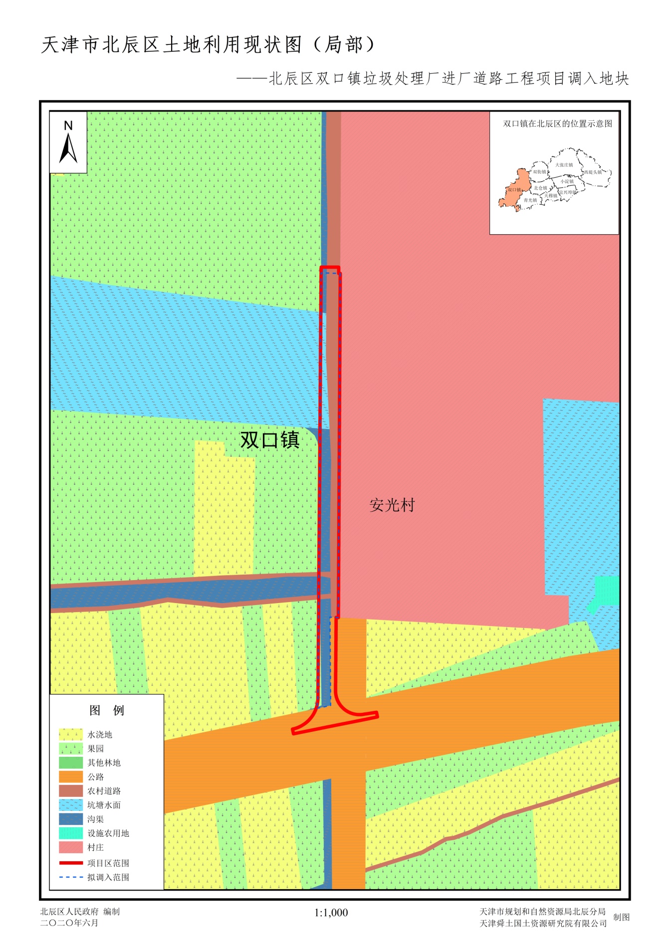 (1)天津市北辰区土地利用现状图(局部)—北辰区双口镇垃圾处理厂进厂道路工程项目调入地块