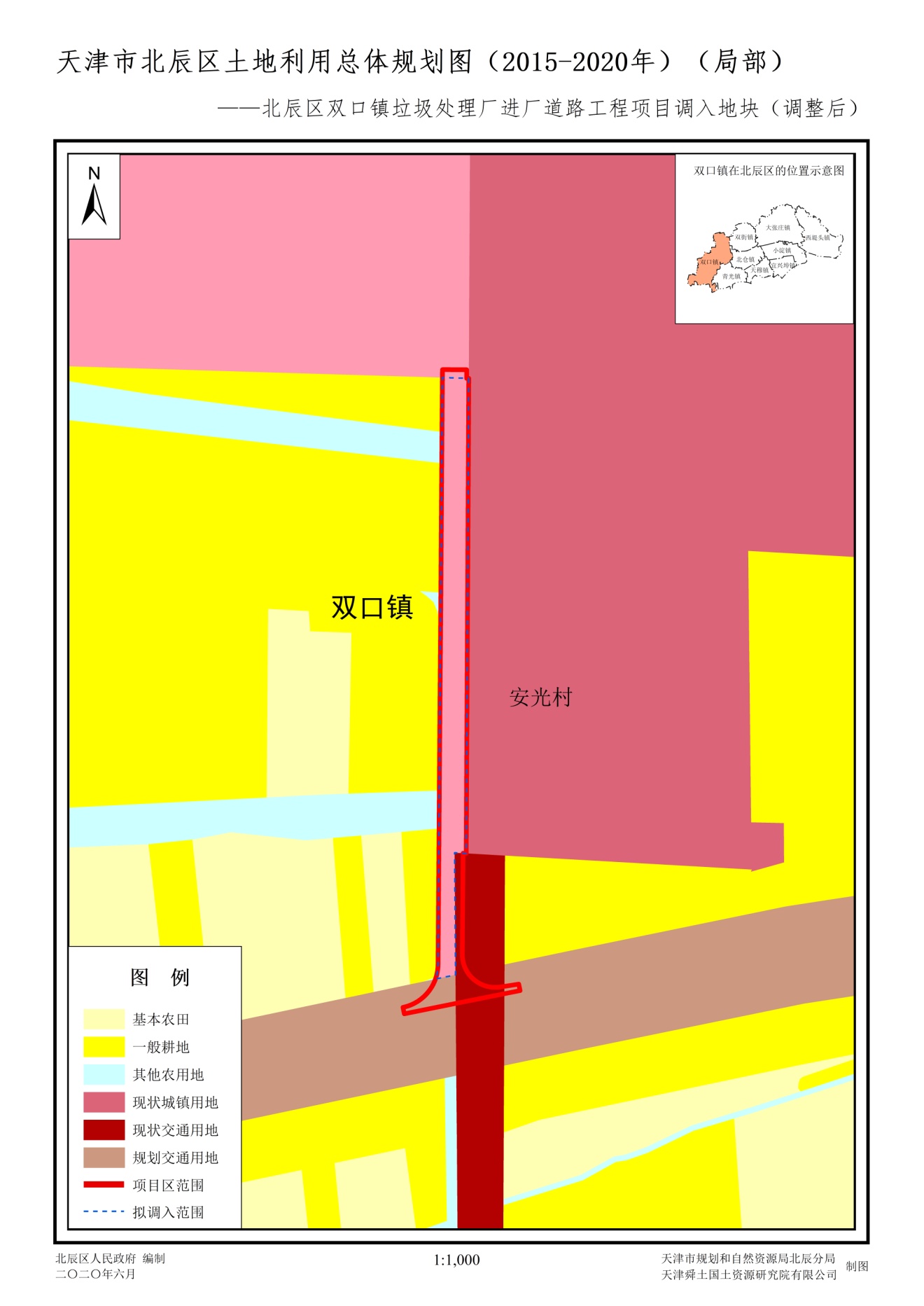 (3)天津市北辰区土地利用总体规划图(2015-2020 年)(局部)—北辰区双口镇垃圾处理厂进厂道路工程项目调入地块(调整后)