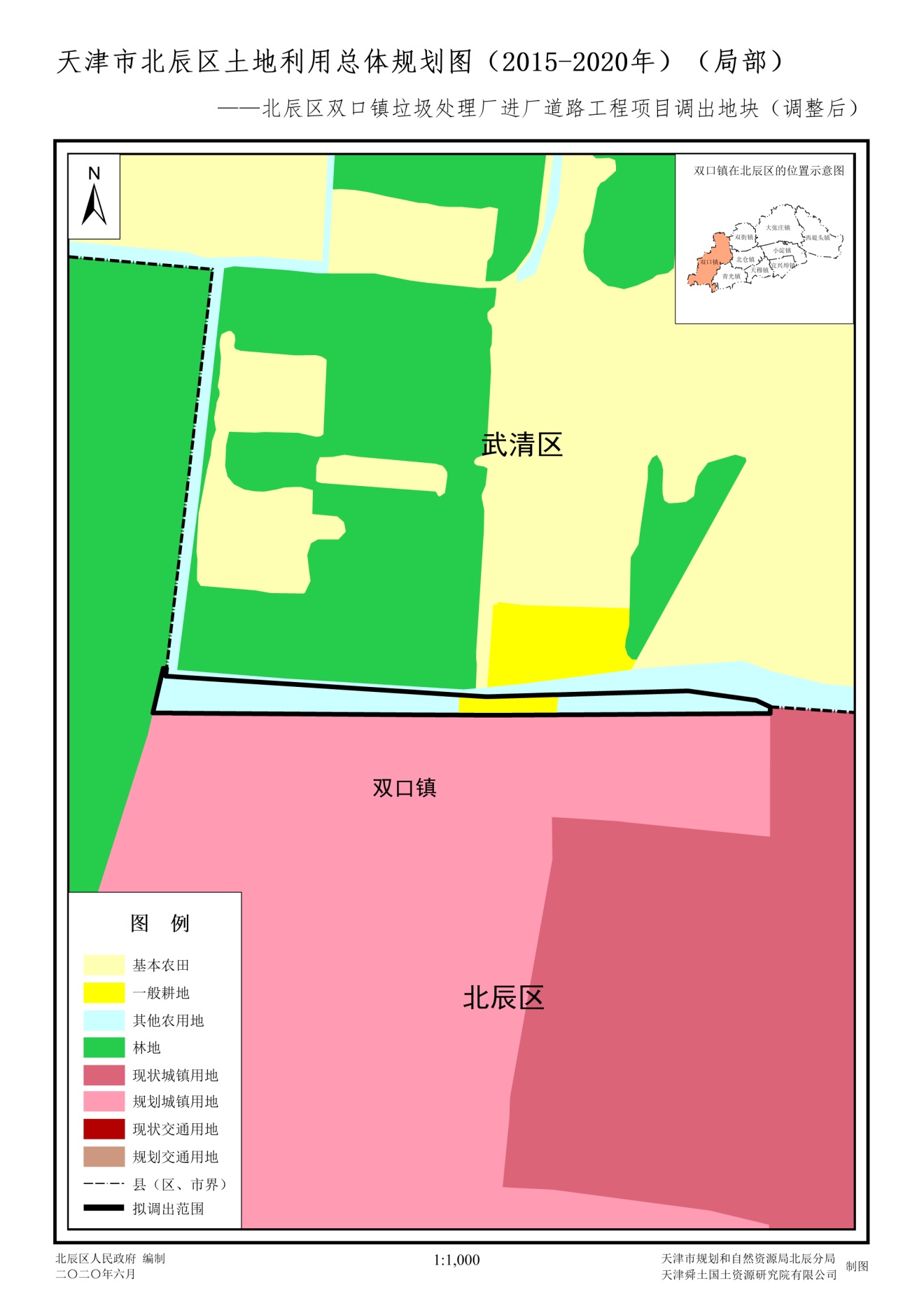 附图6天津市北辰区土地利用总体规划图(2015-2020 年)(局部)—北辰区双口镇垃圾处理厂进厂道路工程项目调出地块(调整后)