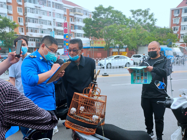 千里堤市场及周边是我市鸟类非法交易高发区。针对我市类似点位,市规划资源部门进行过多次普法宣传和清理整治,但由于涉嫌违法人员警惕性高,交易过程隐蔽,加之行政执法强制手段相对欠缺,无法进一步获取涉嫌违法人员相关违法证据,治理效果欠佳。对此,市规划资源部门充分发挥野生动物保护志愿者作用,及时掌握涉嫌违法线索;积极联系属地政府,通报涉嫌违法人员信息及活动规律;多次会同属地街道工作人员召开碰头会,加强沟通联动。针对当前各部门对鸟类非法交易行为执法存在的弱项短板,专门研究制定联合清理行动方案:市规划资源局行政执法总队负责对涉嫌违法人工繁育市重点保护鸟类行为进行处置,并负责为行动组进行鸟类初步鉴别指导;属地综合执法大队对市场周边违法占道经营鸟笼鸟具及疫情期间违规经营活禽行为进行清缴;属地市场监管部门对市场内存在的涉嫌非法交易、饲养鸟类行为进行清理;属地派出所负责对拒不配合甚至暴力抗法人员予以控制,为联合行动“保驾护航”。