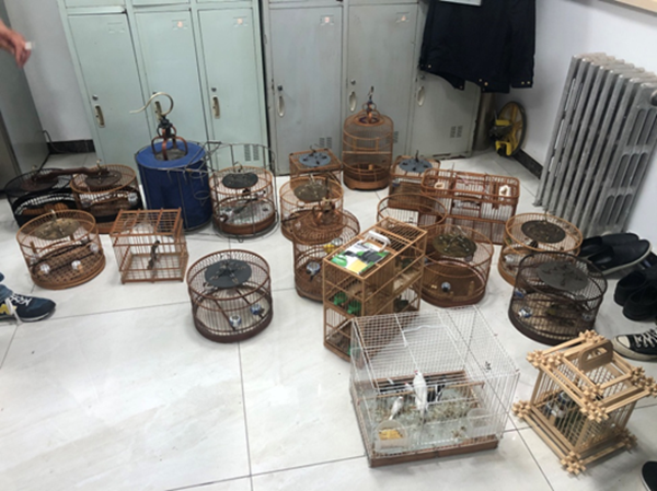 随着公众野生动物保护意识不断提高,我市鸟类非法交易行为已大为减少,但仍有部分人员存在侥幸心理进行私下交易。近期,根据野生动物保护志愿者反映,红桥区千里堤市场周边经常有一批遛鸟人员在此盘踞,疑似存在私下买卖行为。为此,7月9日、11日,联合行动组兵分两路从丁字沽一号路与本溪路、绥中路交口相向包围,对违法占道买卖活体鸟类的行为进行了清缴行动。现场共计查处市重点保护鸟类黄雀、煤山雀、黄腹山雀、沼泽山雀、蓝喉歌鸲等9只,其他鸟类11只,鸟笼40余个;劝离售卖其他鸟类、鸟具、鸟食的商贩10余人。行动结束后,市规划资源局行政执法总队野保支队根据《中华人民共和国野生动物保护法》《天津市野生动物保护条例》有关规定,对5名鸟类非法交易涉事人员,在现场普法后,要求其立即改正,涉事人员认识到错误后,将满足放飞条件的鸟类现场放飞,其他鸟类由市野生动物救护部门依法依规收容救护。其余涉及占道非法买卖鸟笼等行为后续由属地综合执法大队根据城市管理相关规定对涉事人员进行了处理。