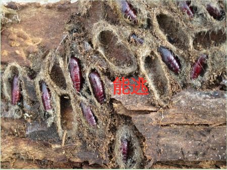 3)能逃:老熟幼虫沿树干爬到地面,在砖瓦、石块下、墙缝、树皮裂缝、落叶杂草或表土内化蛹。