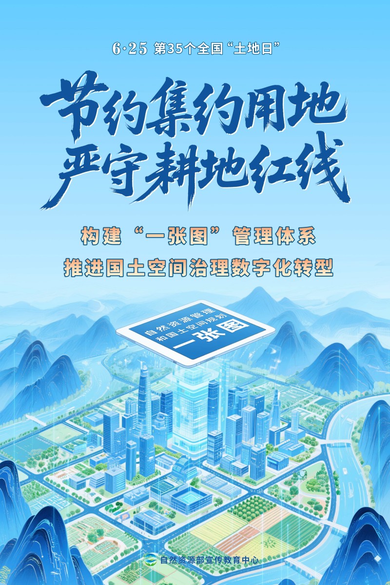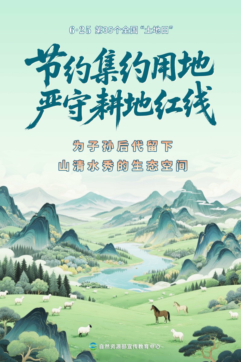 2025年6月25日是第35个全国“土地日”,宣传主题是“节约集约用地 严守耕地红线”。为方便大家开展“耕地保护进万村”等各类线上线下活动,自然资源部宣传教育中心策划制作了多套不同风格的宣传海报,欢迎各地下载使用。希望全社会树立保护耕地、节约用地的意识,像保护大熊猫一样保护耕地,让每一寸土地都成为高质量发展的沃土。