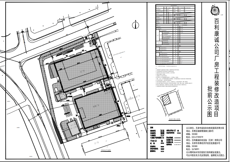 为进一步提高规划设计和管理水平,增加规划审批的科学性、民主性、公开性及透明度,争取社会各界对规划管理工作的理解、支持、监督和指导,加强全社会的城市规划意识,更好地为城市建设、经济发展和社会进步服务,根据有关规定,现将百利康诚公司厂房工程装修改造项目设计方案总平面图进行公示,公示时间为7个工作日(2025年12月5日至2025年12月15日)。公示期间,如对项目规划方案有意见或建议,可以书面实名方式反馈我局或自公示之日起5个工作日内向我局提出书面听证申请,逾期视为无意见。