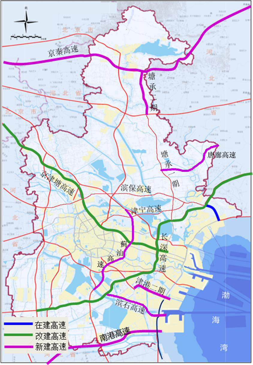 形成5条贯通性双城联系通道,分别是2条高速(京津塘高速、津滨高速)、1条快