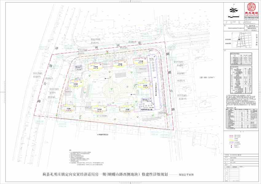 日审定了天津市荣达安居房地产开发有限公司蓟县礼明庄镇定向安置经济适用房一期(蝴蝶山路西侧地块)项目规划方案(