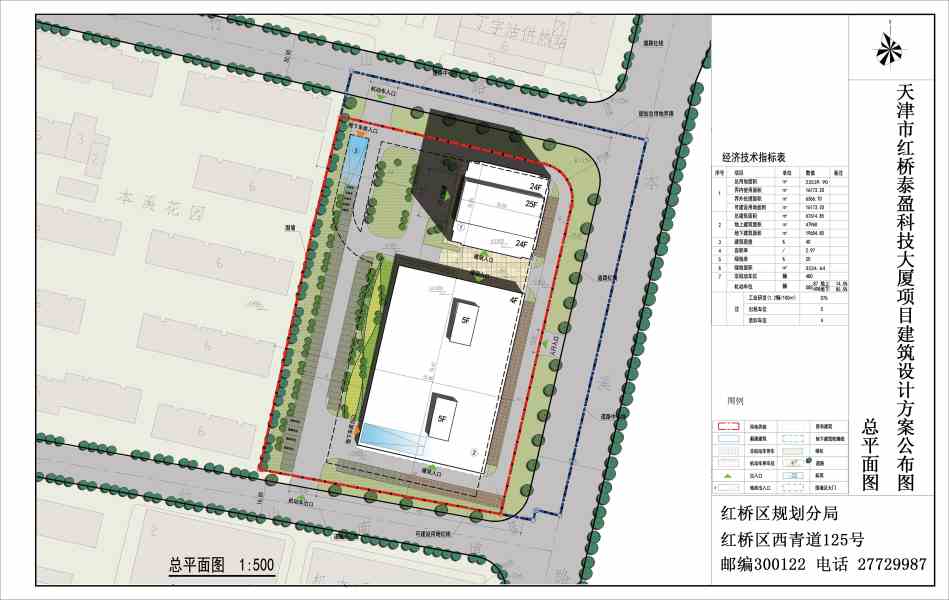 红桥区泰盈科技大厦项目建设工程设计方案已于2015年10月20日经红桥区规划分局审定,依据《城乡规划法》的有关规定,现将方案总平面予以公布。