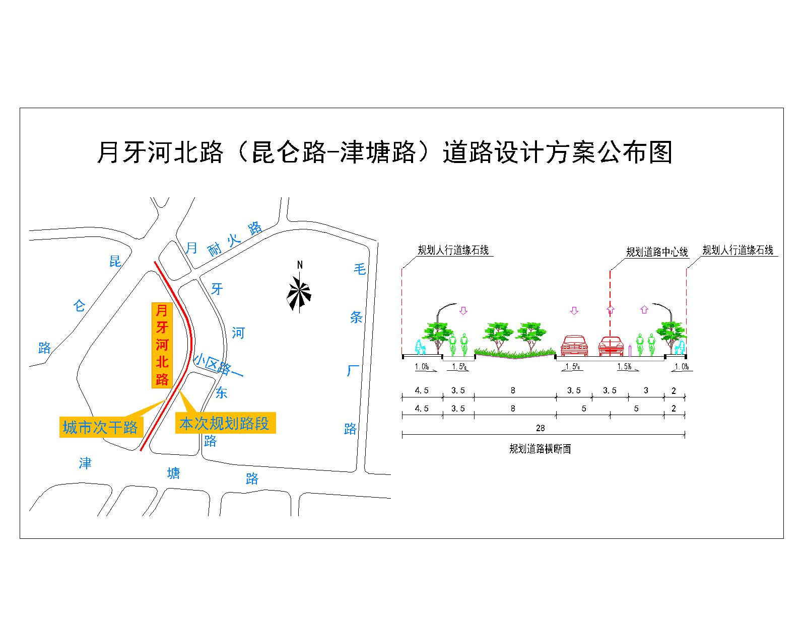 天津市规划和自然资源局河东分局于2021年8月18日核发了月牙河北路(昆仑路-津塘路)道路工程项目建设工程规划许可证,依据《中华人民共和国城乡规划法》及住房和城乡建设部《关于城乡规划公开公示的规定》的有关要求,现将该项目建设工程设计方案公布,公布时间至项目规划验收合格。