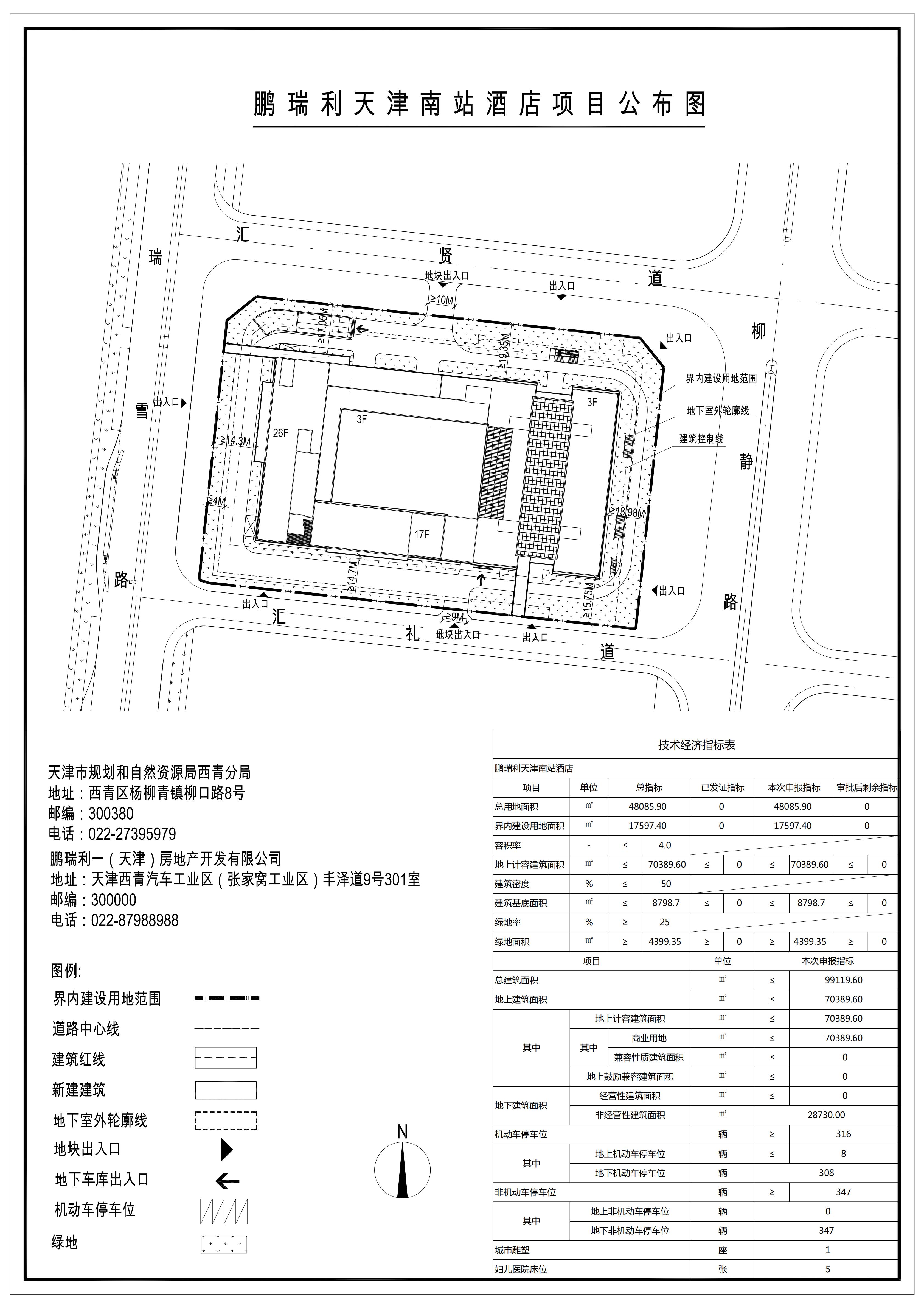 (西青区)鹏瑞利天津南站酒店项目建设工程设计方案总平面图的公布