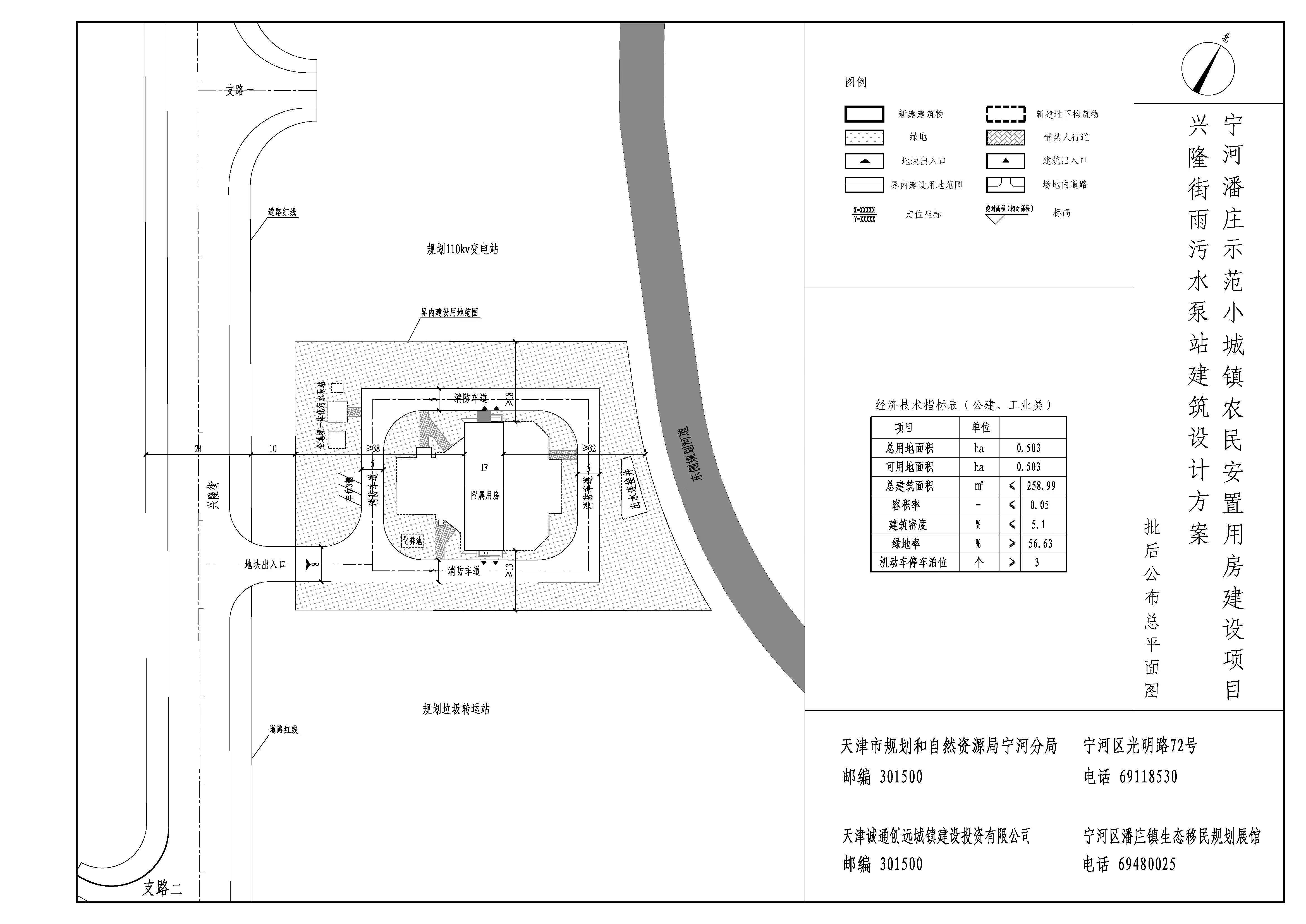 天津市规划和自然资源局宁河分局于2022年07月14日核发了天津诚通创远城镇建设投资有限公司宁河区潘庄示范小城镇农民安置用房建设项目兴隆街雨污水泵站项目建设工程规划许可证。依据《中华人民共和国城乡规划法》及住房和城乡建设部《关于城乡规划公开公示的规定》的有关要求,现将该项目总平面图公布,公布期限为信息发布之日起至建设项目规划验收合格为止。