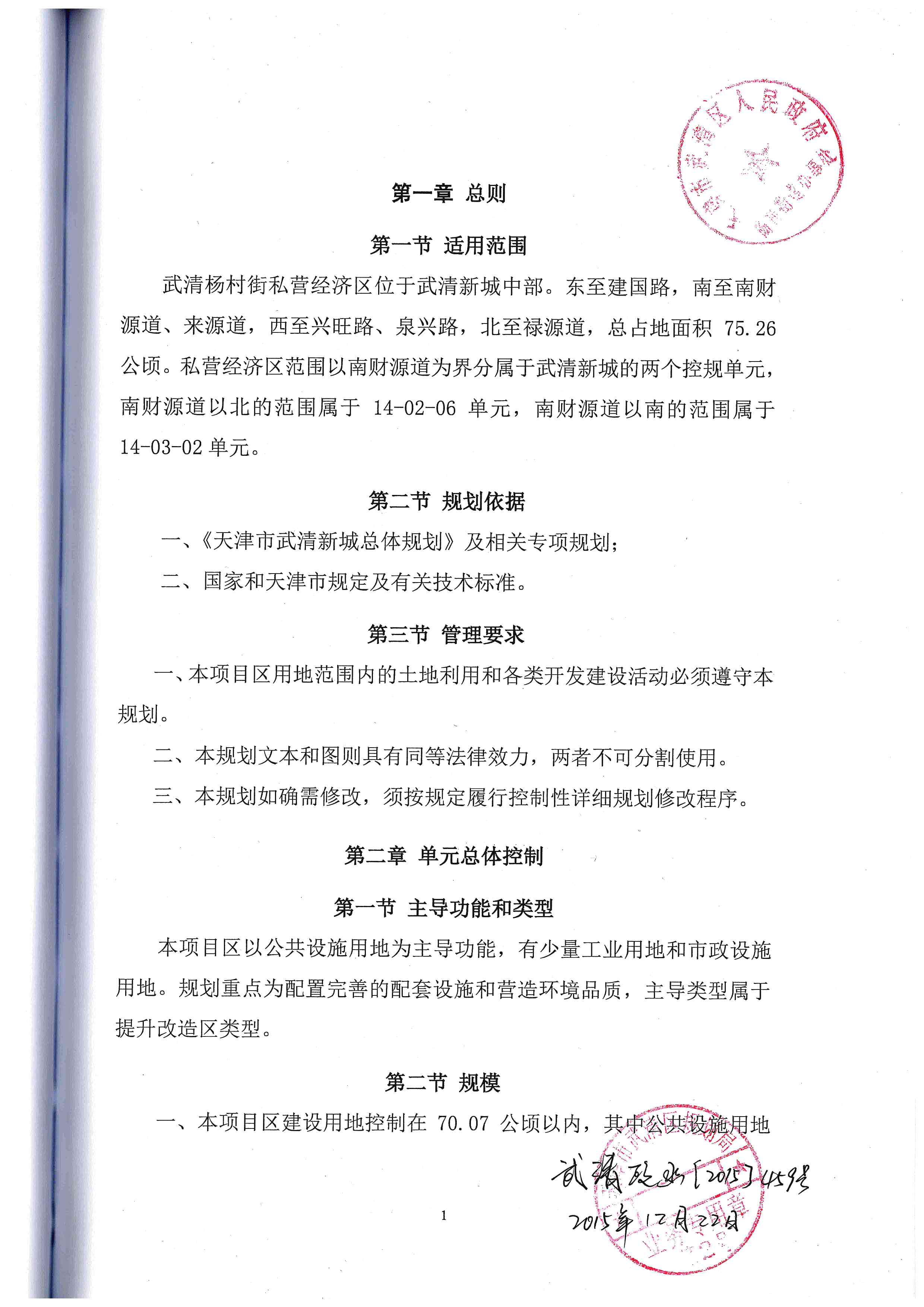 (武清区)关于天津市武清杨村街私营经济区 控制性详细规划的公布