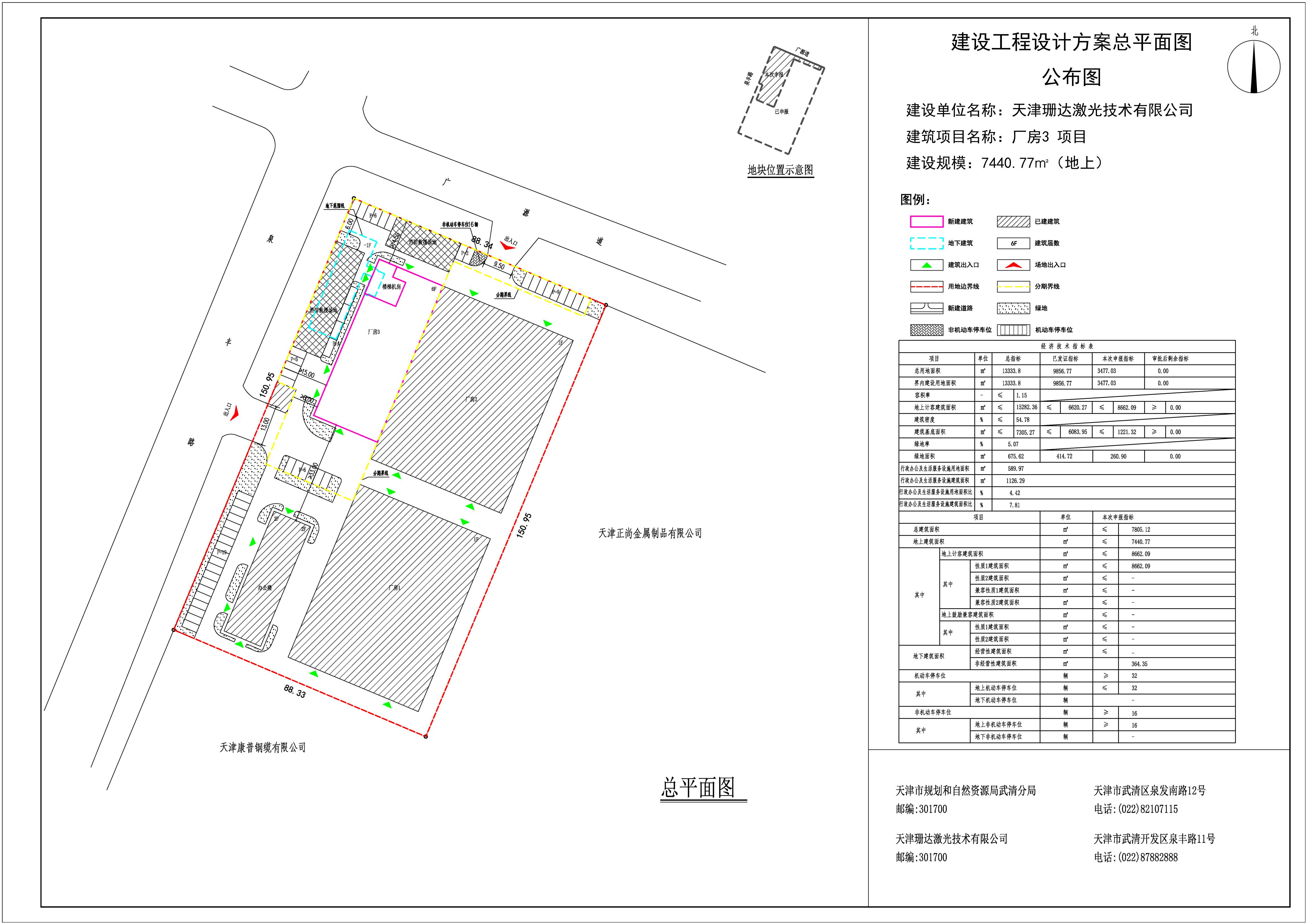 关于天津珊达激光技术有限公司厂房3项目建设工程设计方案总平面图的公布