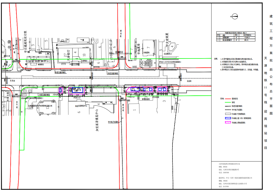 (河西区)关于中交(天津)轨道交通投资建设有限公司天津地铁11号线一期工程迎宾馆站车站附属地上部分(B、C出入口,2、3号风道)项目建设工程设计方案总平面图的公布