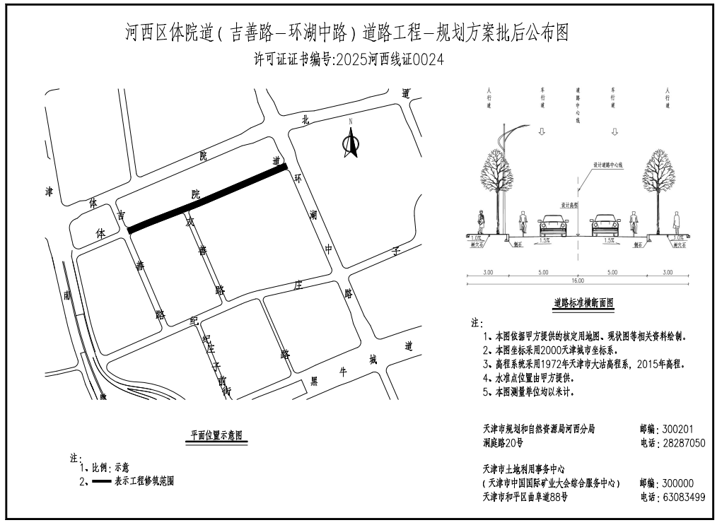 (河西区)关于天津市土地利用事务中心体院道(吉善路-环湖中路)道路工程建设工程设计方案总平面图的公布