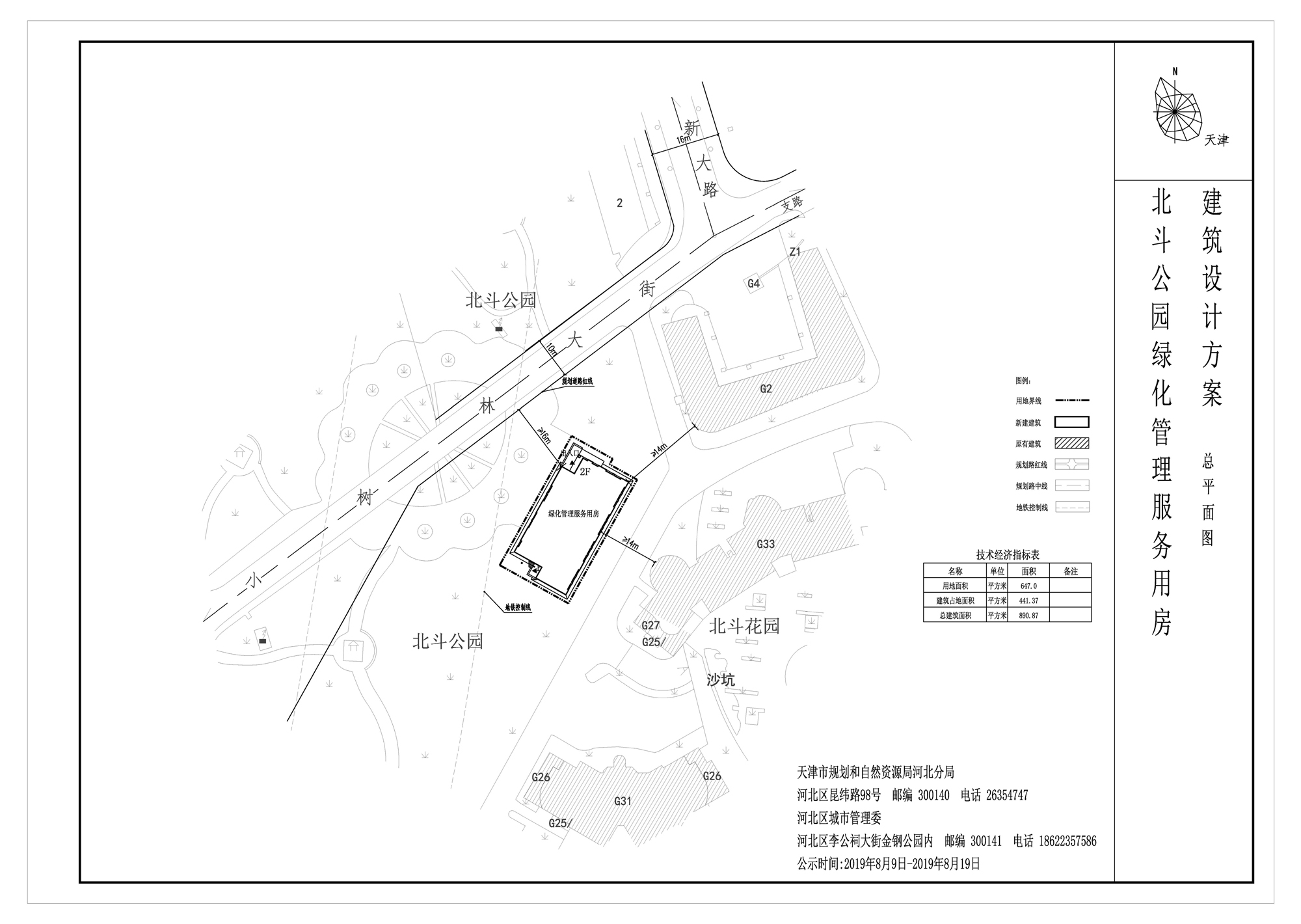 河北区北斗公园绿化管理服务用房建筑设计方案总平面图公示的通知
