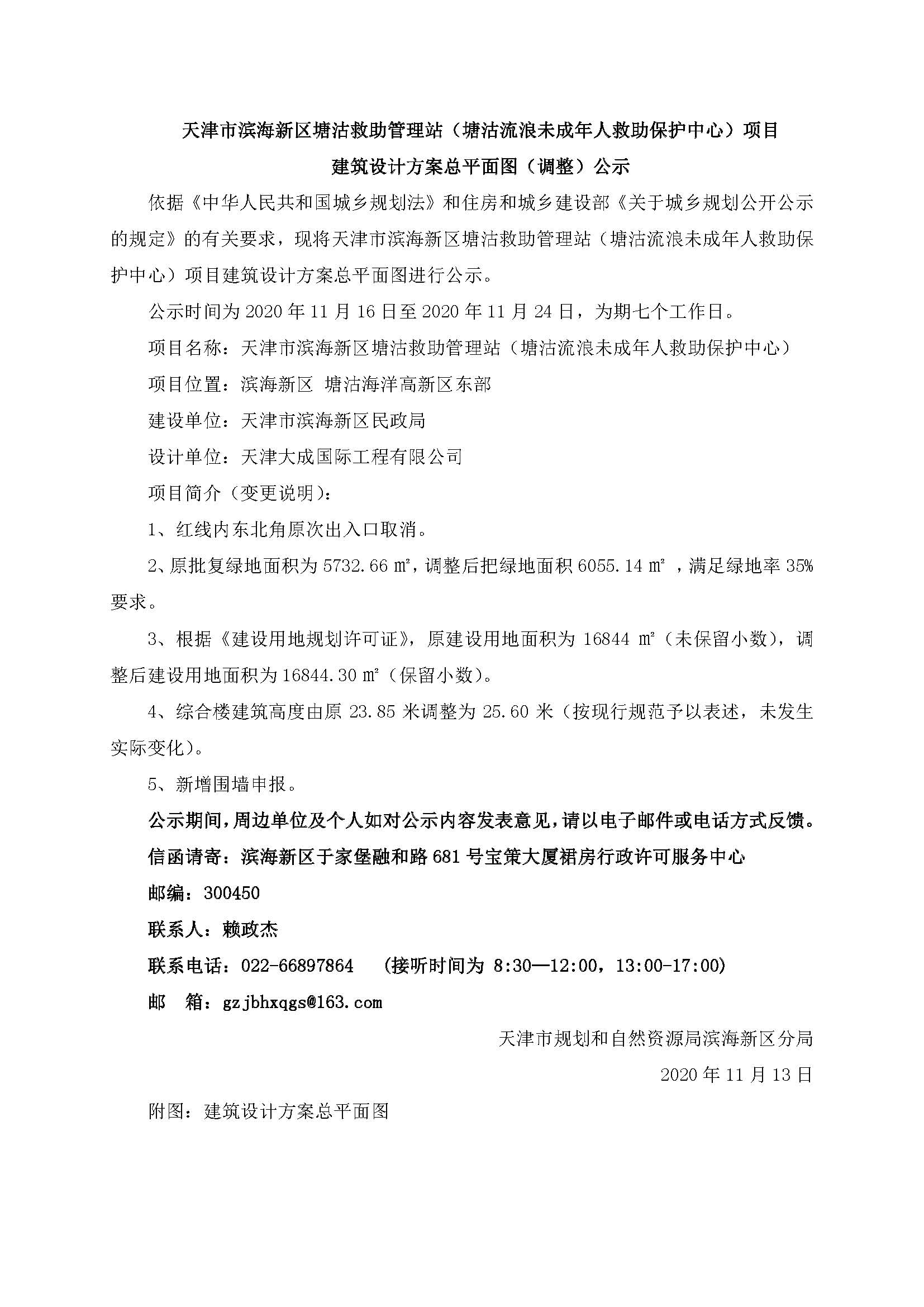 (滨海新区)天津市滨海新区塘沽救助管理站(塘沽流浪未成年人救助保护中心)项目建筑设计方案总平面图(调整)公示