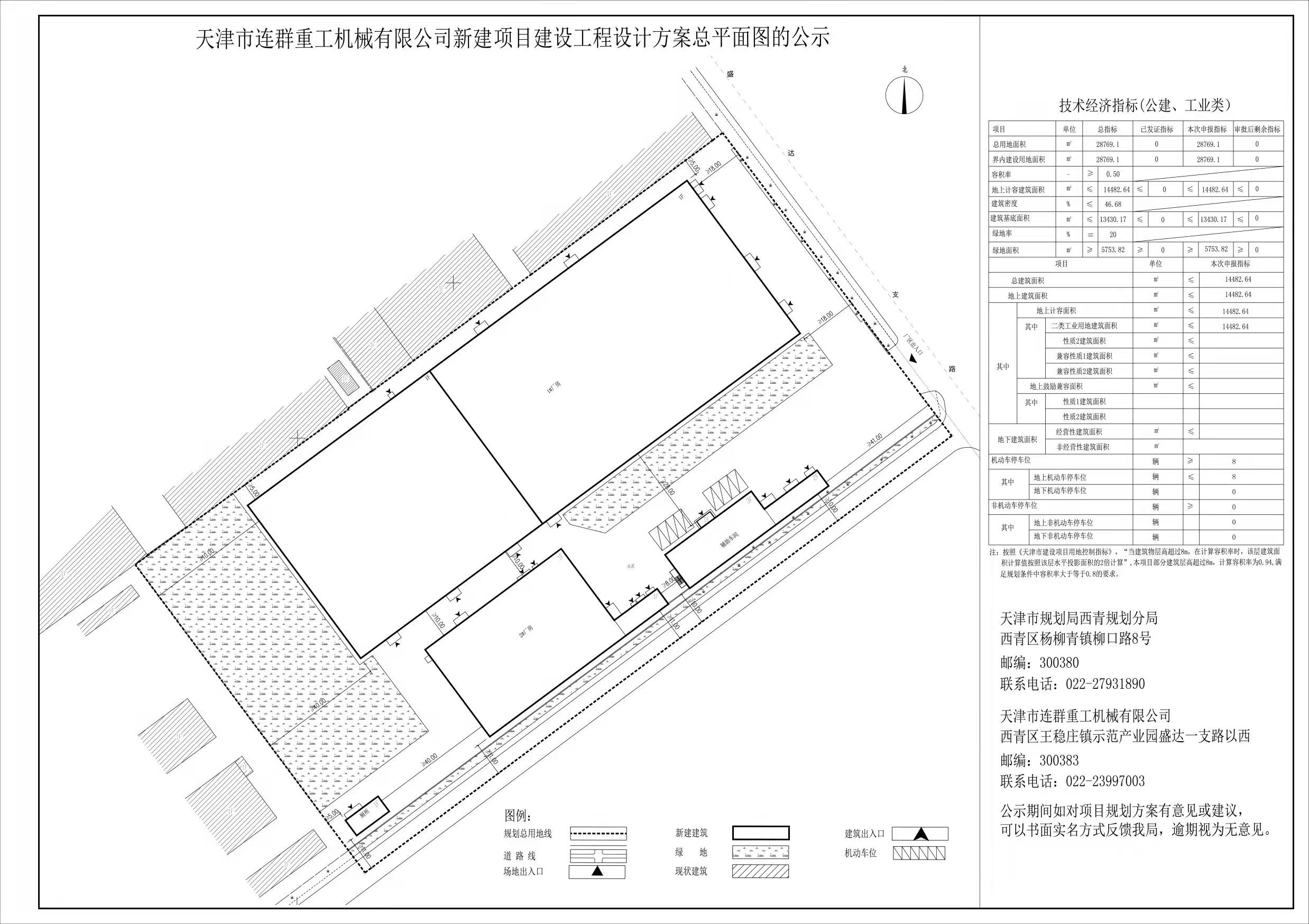 为进一步提高规划设计和管理水平,增加规划审批的科学性、民主性、公开性及透明度,争取社会各界对规划管理工作的理解、支持、监督和指导,加强全社会的城市规划意识,更好地为城市建设、经济发展和社会进步服务,根据有关规定,现将天津市连群重工机械有限公司新建项目规划草案进行公示,公示时间为7个工作日(2021年12月3日至2021年12月13日)。公示期间,如对项目规划方案有意见或建议,可以书面实名方式反馈我局,逾期视为无意见。