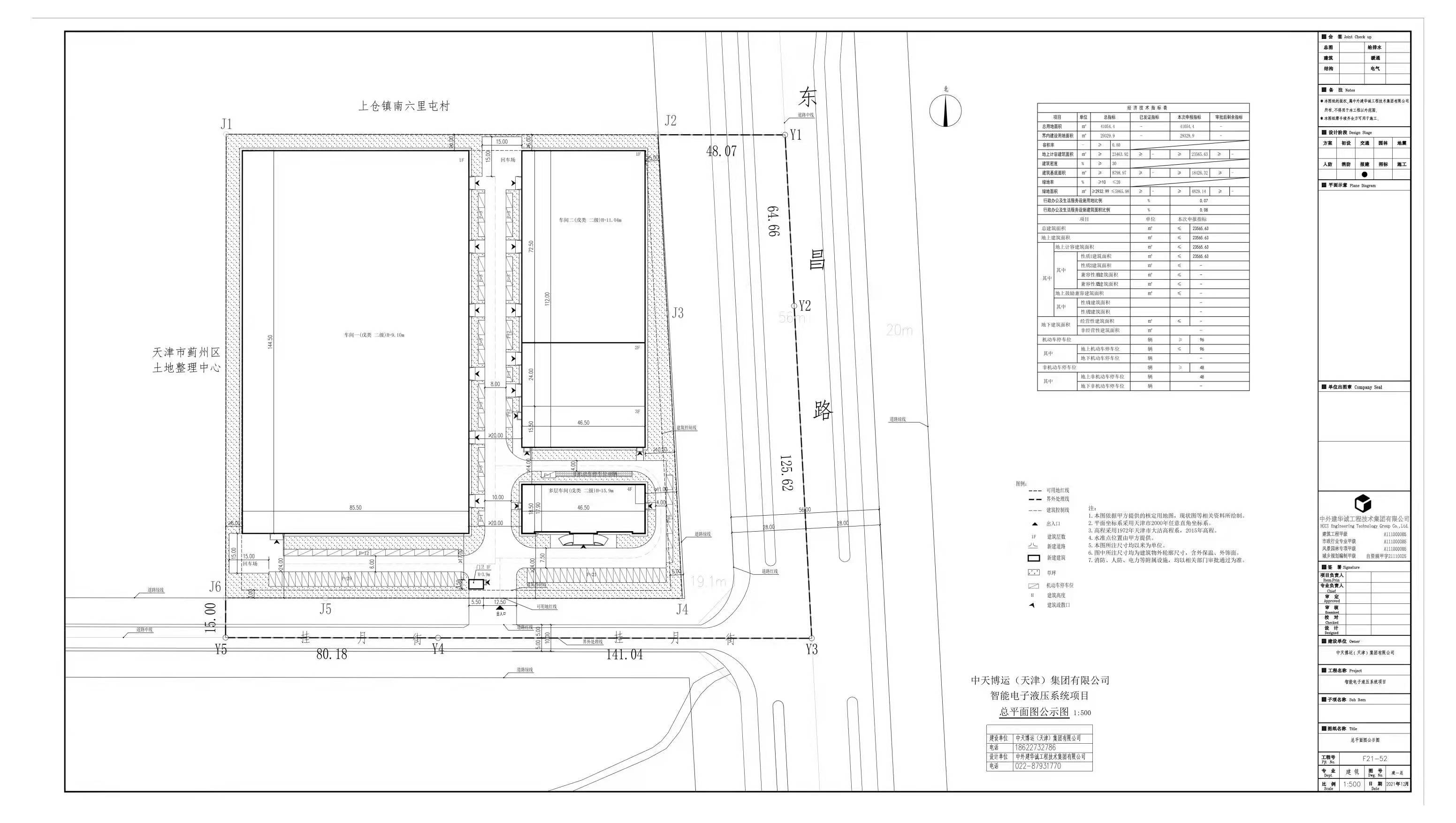 根据《中华人民共和国城乡规划法》、《中华人民共和国行政许可法》,经审核,现将中天博运(天津)集团有限公司在蓟州区东昌路西侧、挂月街北侧智能电子液压系统项目建设工程设计方案总平面草案予以批前公示,公示期为7工作日,自2021年12月29日至2022年1月7日为止。如对本设计方案草案有不同意见,请于2022年1月7日之前以书面形式将反映情况寄(送)到中天博运(天津)集团有限公司、中外建华诚工程技术集团有限公司、天津市规划和自然资源局蓟州分局。单位反映情况请加盖公章,个人反映情况请签署真实姓名和工作单位,并留下联系电话、地址、邮编,以便及时与您联系。
