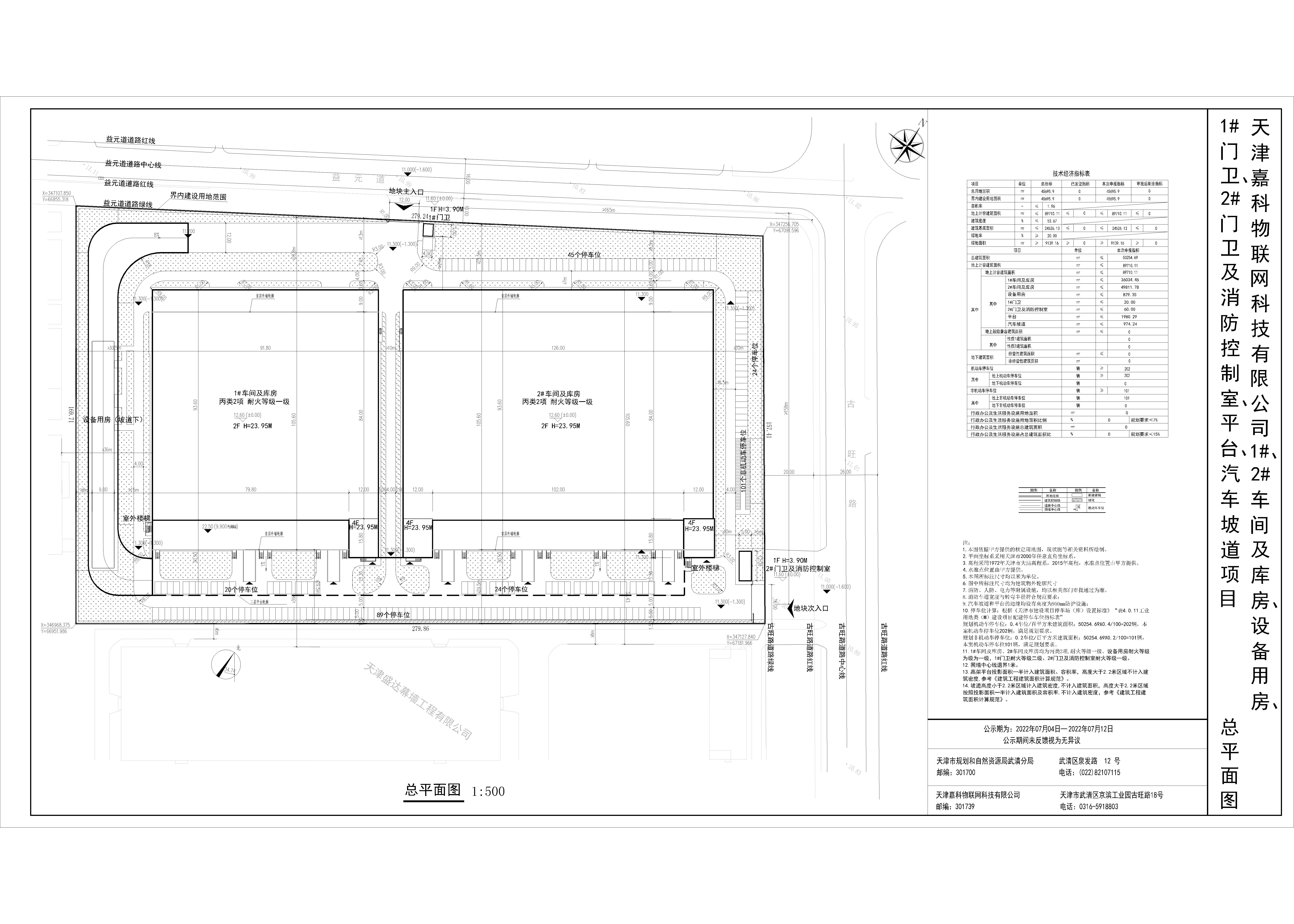 请在信封上注明:对 天津嘉科物联网科技有限公司1#、2#车间及库房、设备用房、1#门卫、2#门卫及消防控制室、平台、汽车坡道 建筑设计方案公示的意见。
