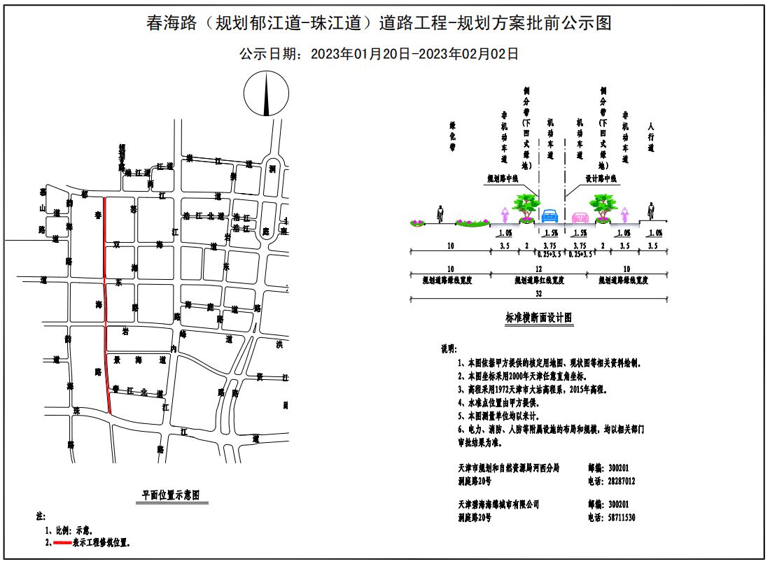 (河西区)关于天津碧海海绵城市有限公司春海路(规划郁江道-珠江道)道路工程项目建设工程设计方案总平面图的公示