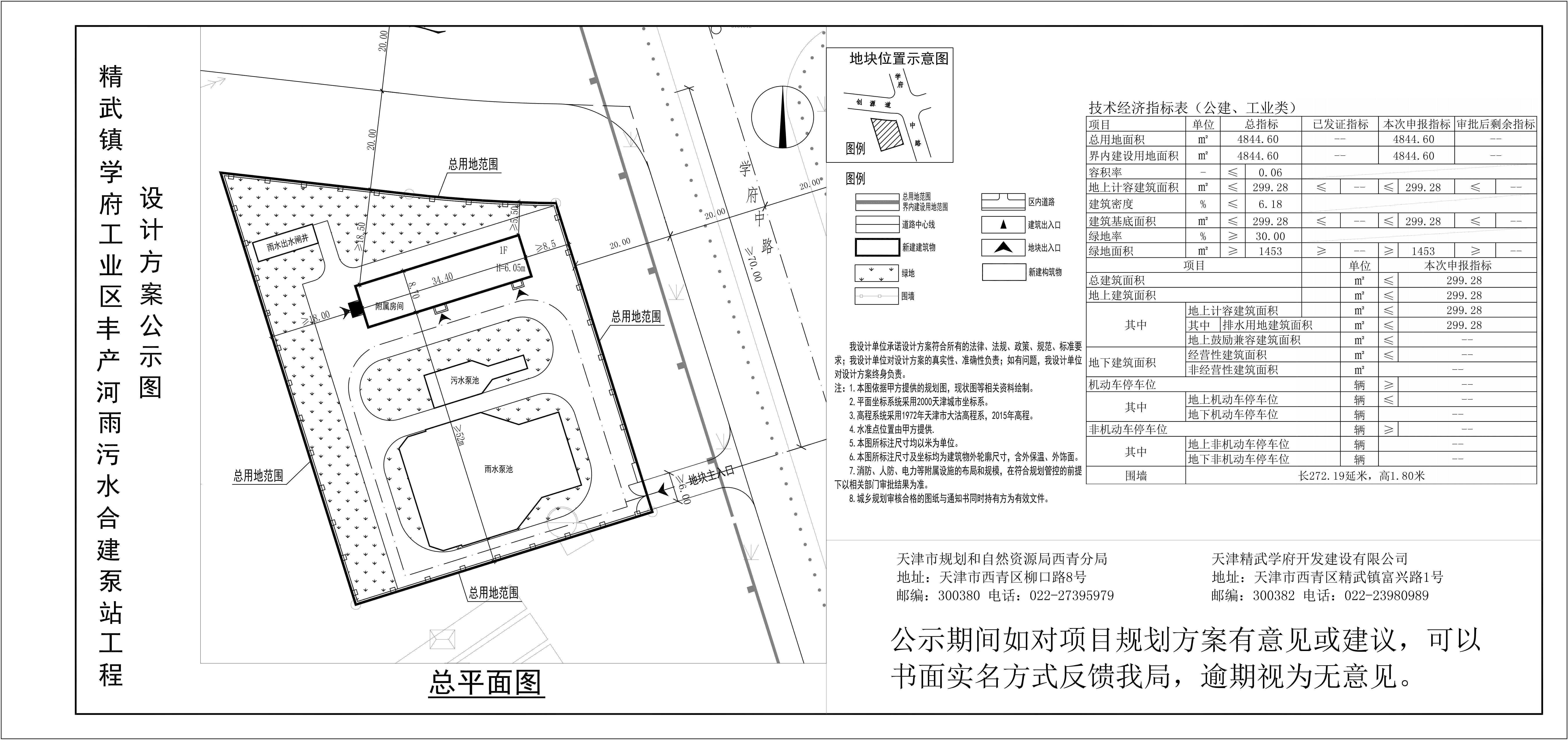 为进一步提高规划设计和管理水平,增加规划审批的科学性、民主性、公开性及透明度,争取社会各界对规划管理工作的理解、支持、监督和指导,加强全社会的城市规划意识,更好地为城市建设、经济发展和社会进步服务,根据有关规定,现将精武镇学府工业区丰产河雨污水合建泵站工程建设工程设计方案总平面图进行公示,公示时间为7个工作日(2023年3月2日至2023年3月10日)。公示期间,如对项目规划方案有意见或建议,可以书面实名方式反馈我局或自公示之日起5个工作日内向我局提出书面听证申请,逾期视为无意见。