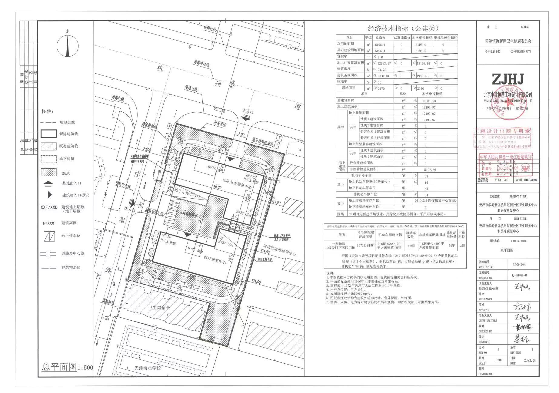 依据《中华人民共和国城乡规划法》和住房和城乡建设部《关于城乡规划公开公示的规定》的有关要求,现将天津市滨海新区杭州道街社区卫生服务中心和医疗康复中心项目建筑设计方案总平面图进行公示。