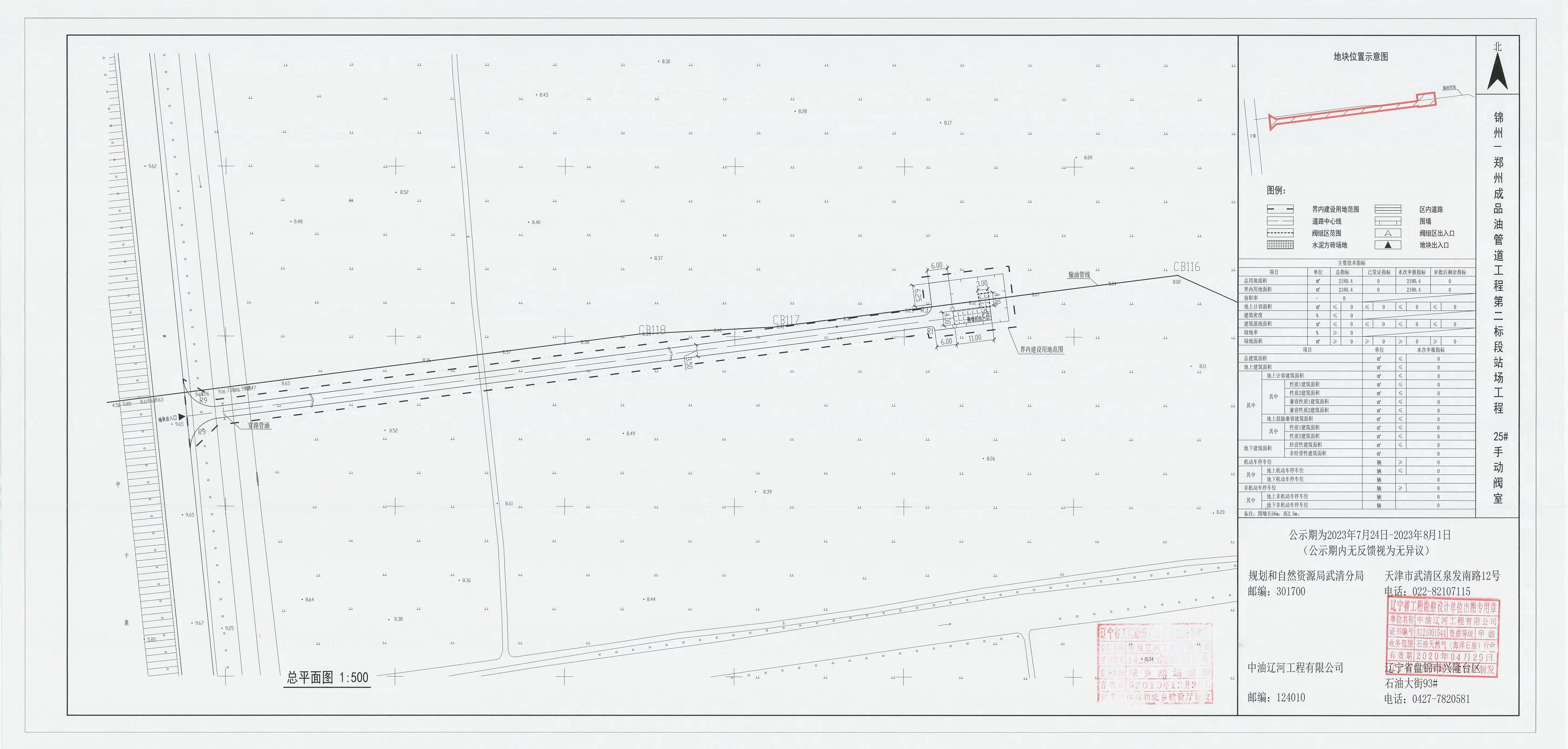 天津市规划和自然资源局武清分局按照原住房城乡建设部印发的《关于城乡规划公开公示的规定》以及相关规定要求,公示 国家管网集团北方管道有限责任公司锦州-郑州成品油管道工程25#阀室项目 建设工程设计方案总平面图。公示期限自信息发布起7个工作日。