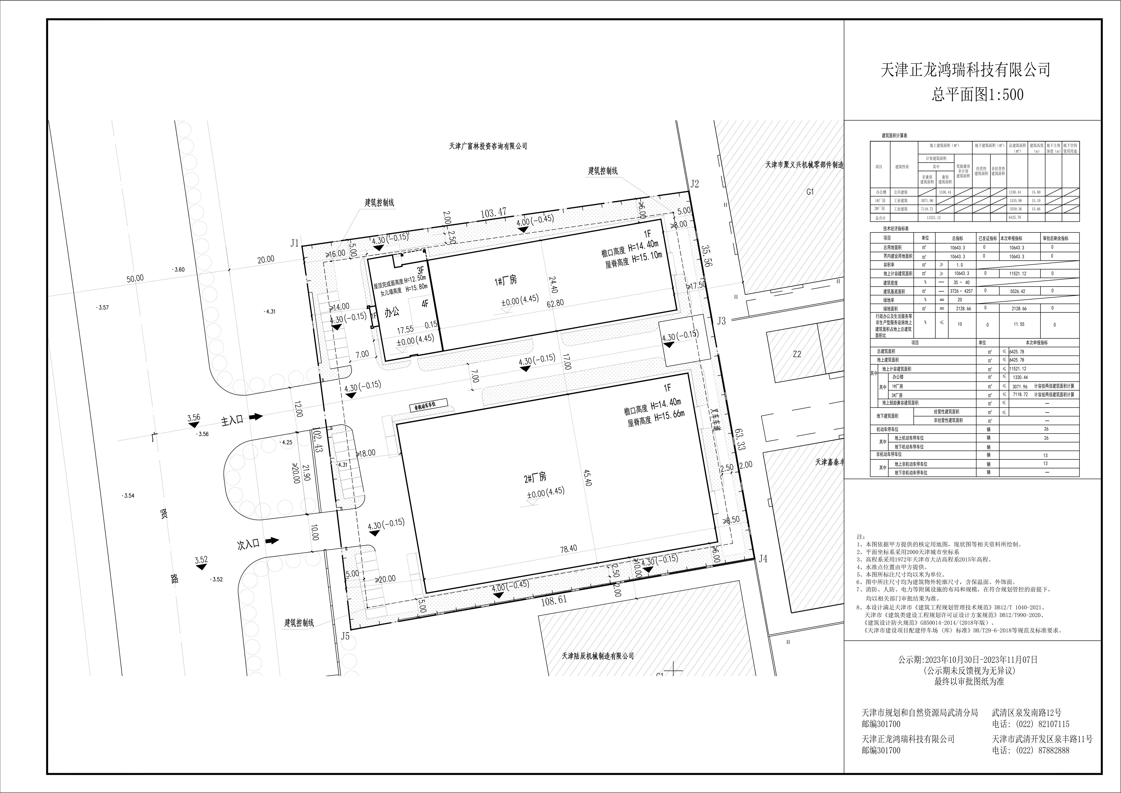 反馈时请注明:对 天津正龙鸿瑞科技有限公司办公楼、1#、2#厂房、围墙大门项目 建设工程设计方案总平面图公示的意见。反馈的截止日期为公示期限最后一天(邮寄方式反馈的以邮戳日期为准),逾期未反馈的,视为无意见。