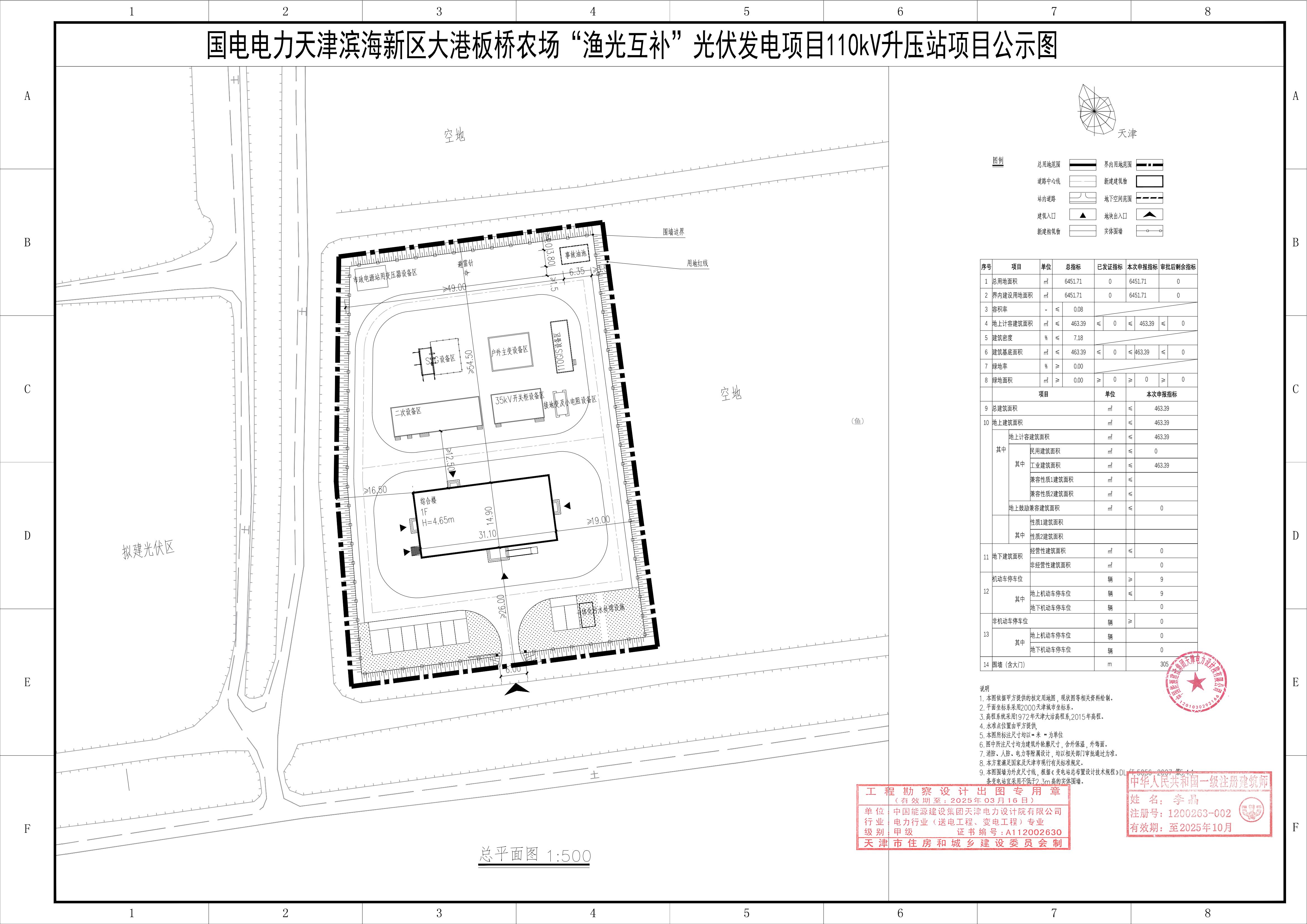 项目名称:国电电力天津滨海新区大港板桥农场“渔光互补”光伏发电项目110kV升压站项目