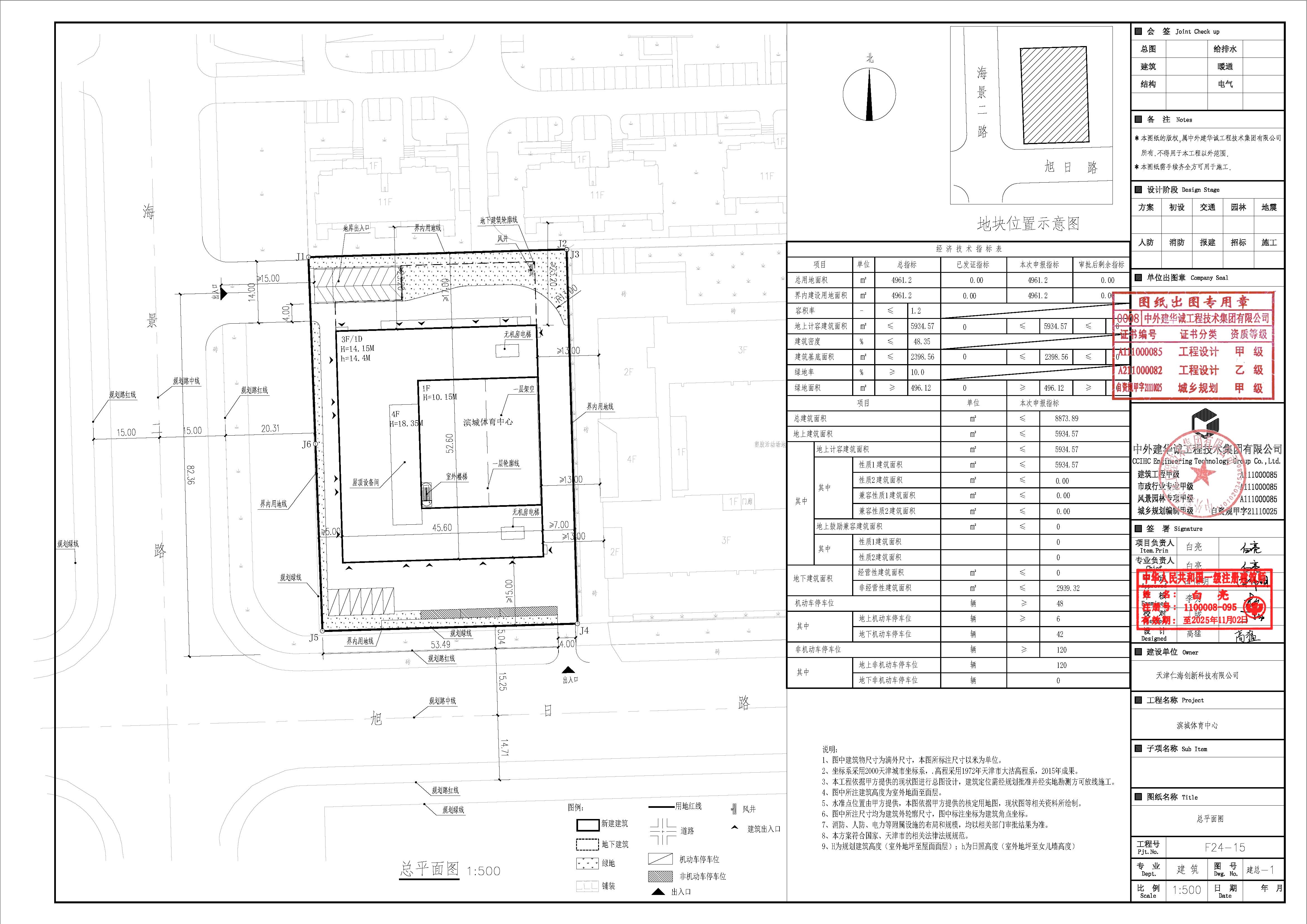 项目简介:滨城体育中心位于滨海新区海景二路以东、旭日路以北,项目占地面积4961.2平方米,总建筑面积约为8873.89平方米。