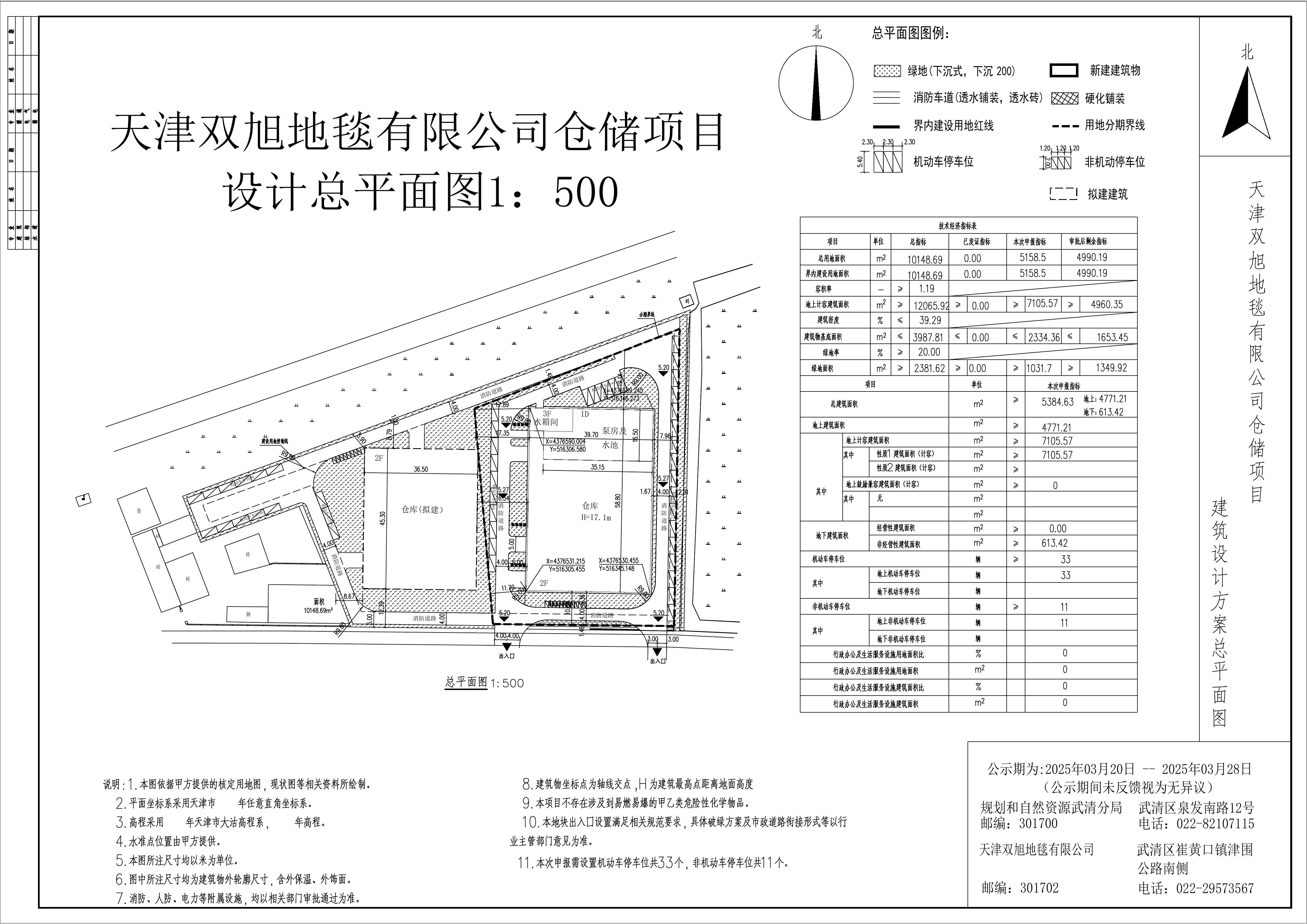 关于天天津双旭地毯有限公司仓储项目建设工程设计方案总平面图公示