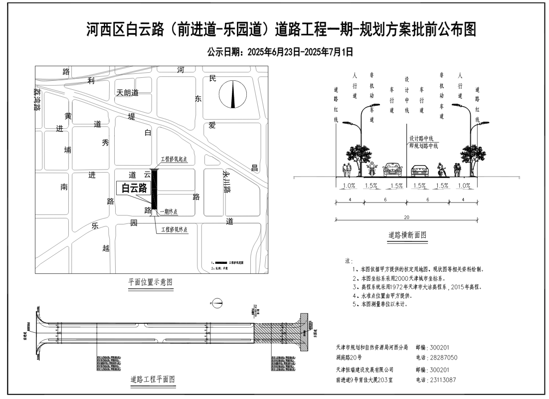 (河西区)关于天津恒瑞建设发展有限公司白云路(前进道-乐园道)道路工程建设工程设计方案总平面图的公示