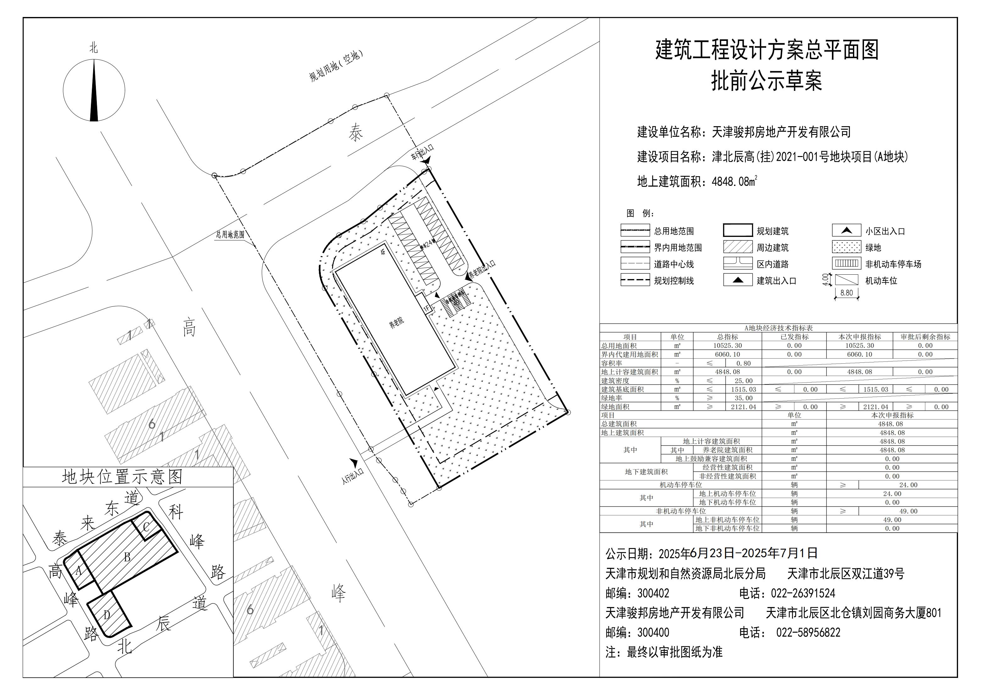 (北辰区)关于天津骏邦房地产开发有限公司津北辰高(挂)2021-001号地块项目(A地块)建筑工程设计方案总平面图批前的公示