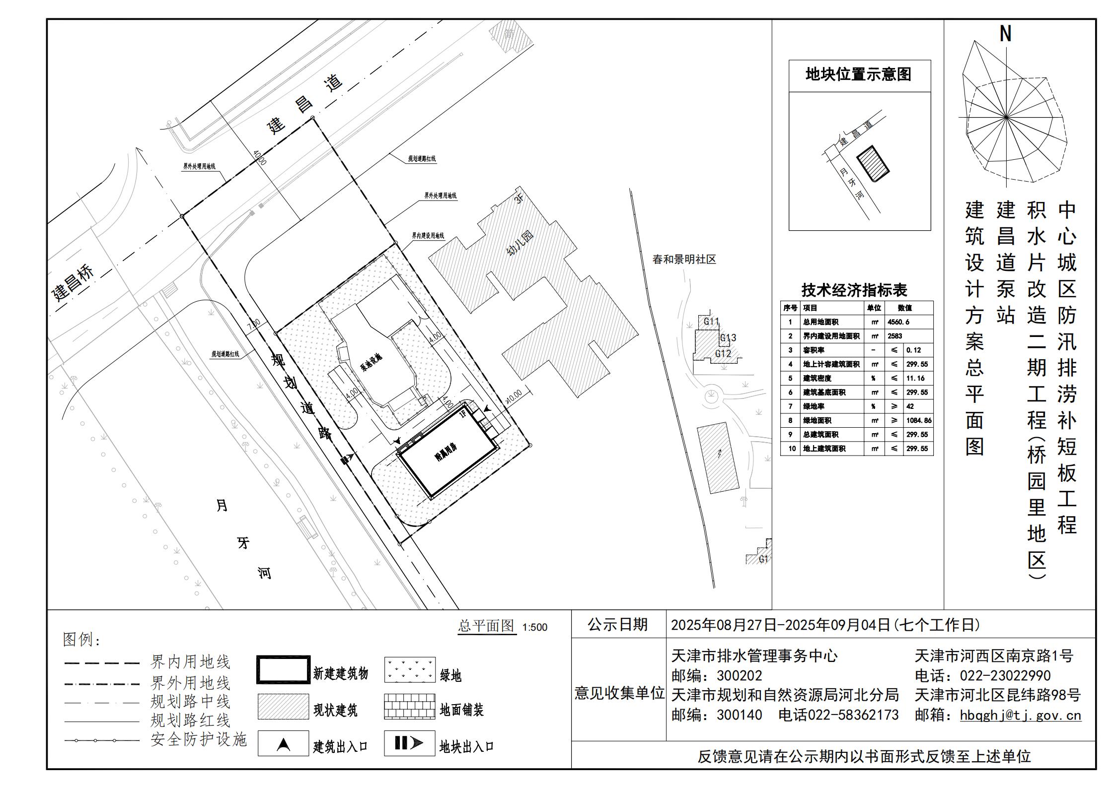 (河北区)关于中心城区防汛排涝补短板工程积水片改造二期(桥园里地区)建昌道雨水泵站项目建筑设计方案总平面图的公示