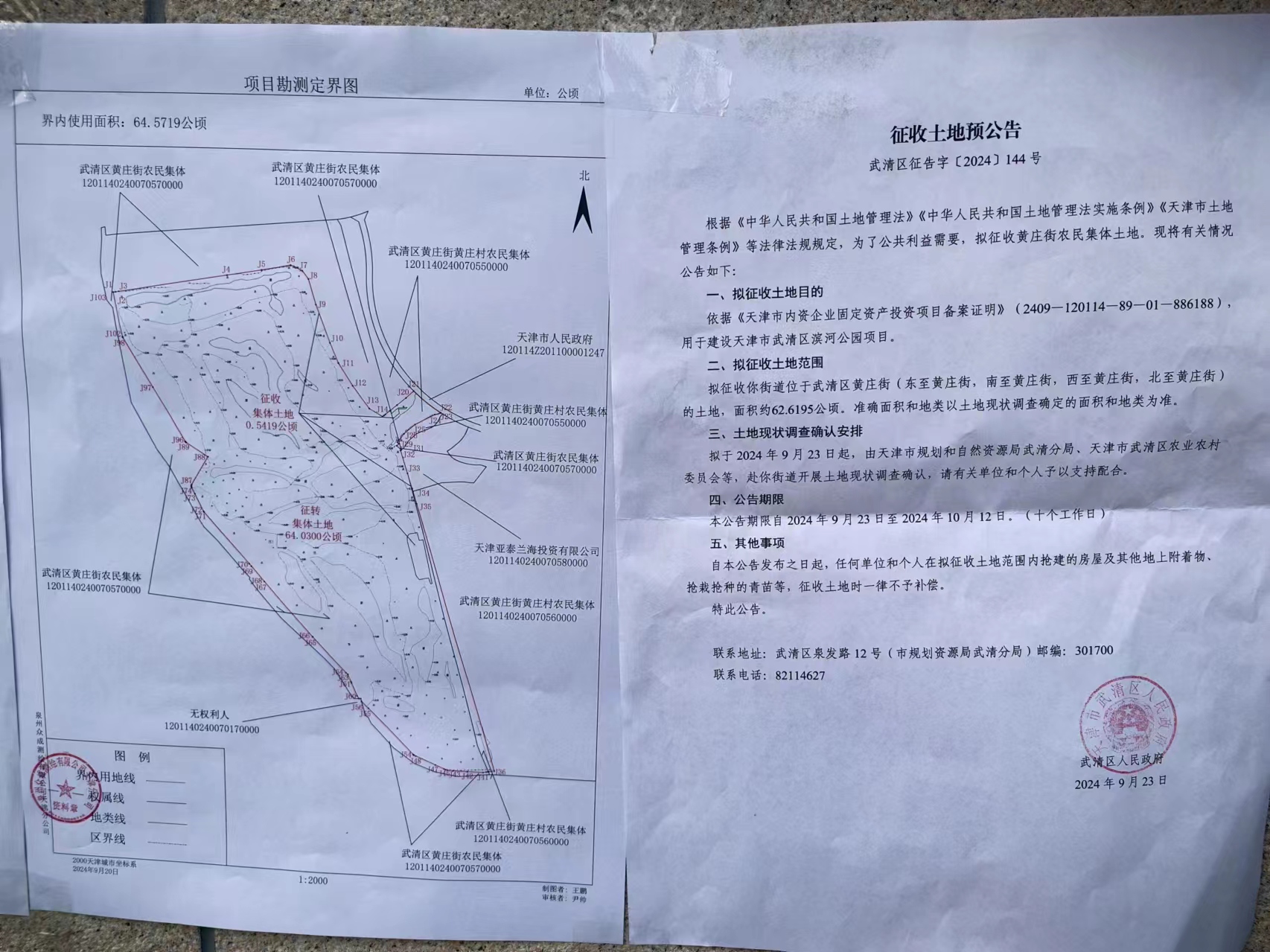 根据《中华人民共和国土地管理法》《中华人民共和国土地管理法实施条例》《天津市土地管理条例》等法律法规规定,为了公共利益需要,拟征收黄庄街农民集体土地。现将有关情况公告如下: