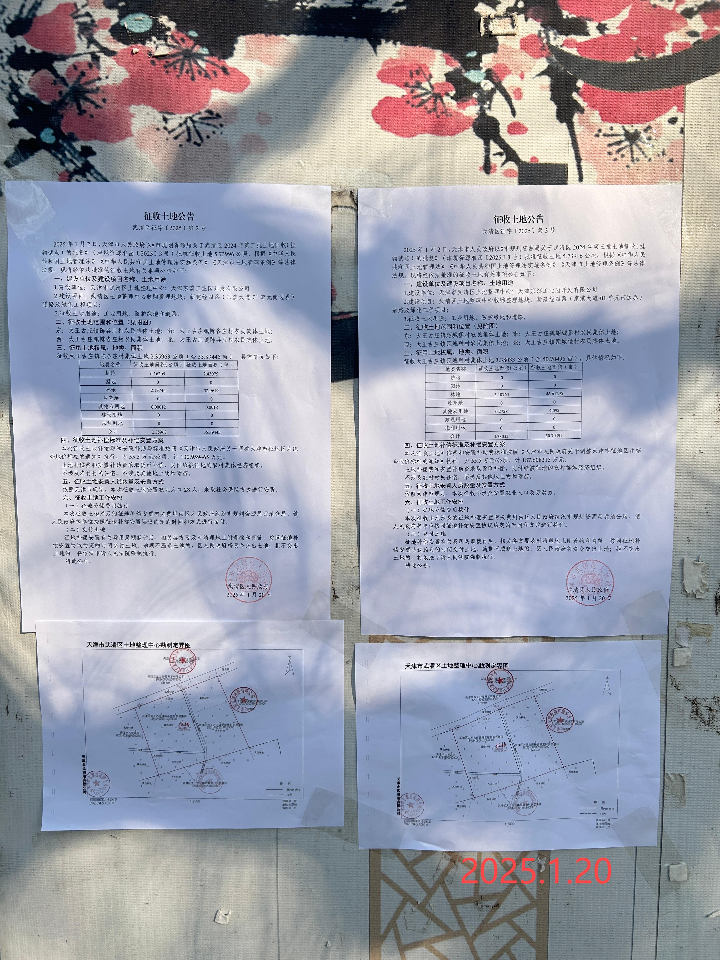 2025年1月2日,天津市人民政府以《市规划资源局关于武清区2024年第三批土地征收(挂钩试点)的批复》(津规资源准函〔2025〕3号)批准征收土地5.73996公顷,根据《中华人民共和国土地管理法》《中华人民共和国土地管理法实施条例》《天津市土地管理条例》等法律法规,现将经依法批准的征收土地有关事项公告如下: