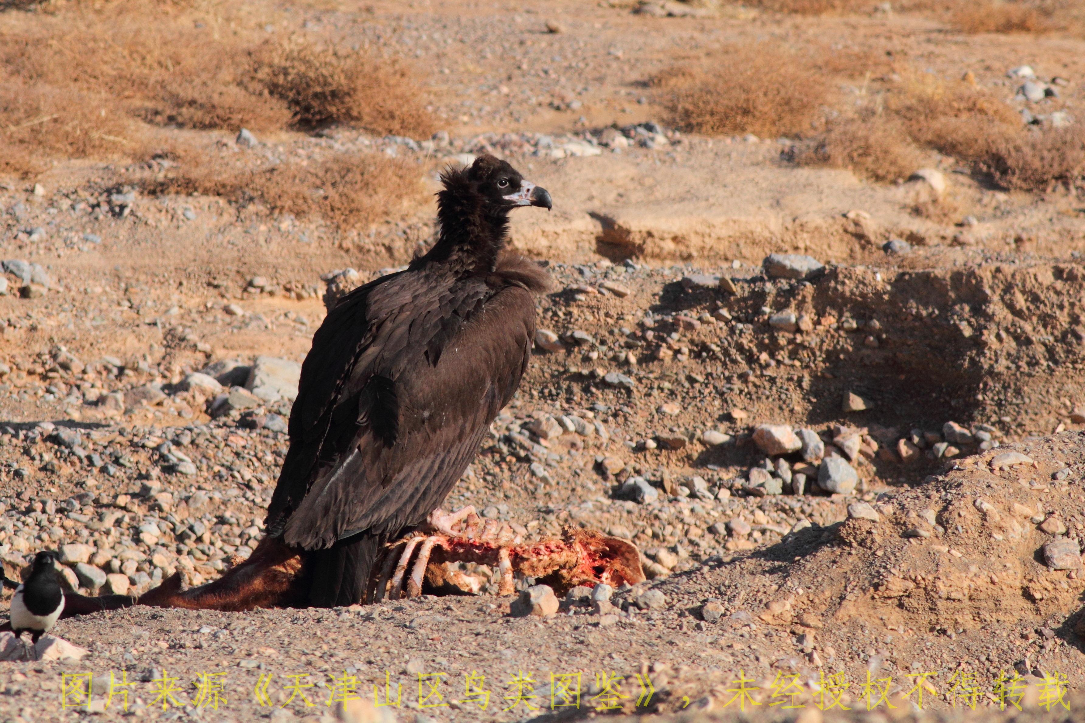 巨大体型的猛禽。身体深褐色,嘴色由基部开始向浅色变化,嘴尖钩状。头部裸露,皮黄色,喉及眼下部分黑色。翼指7枚,尾短呈楔形。全身羽毛常呈破烂状态。