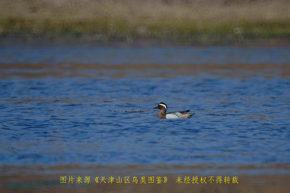 雄鸭嘴黑色,头和颈淡栗色,具白色细纹;眉纹白色,宽而长,一直延伸到头后,极为醒目。上体棕褐色,下腹和两胁亦为棕白色,但具暗褐色波状细斑。雌鸭上体黑褐色,下体白而带棕色;眉纹白色。