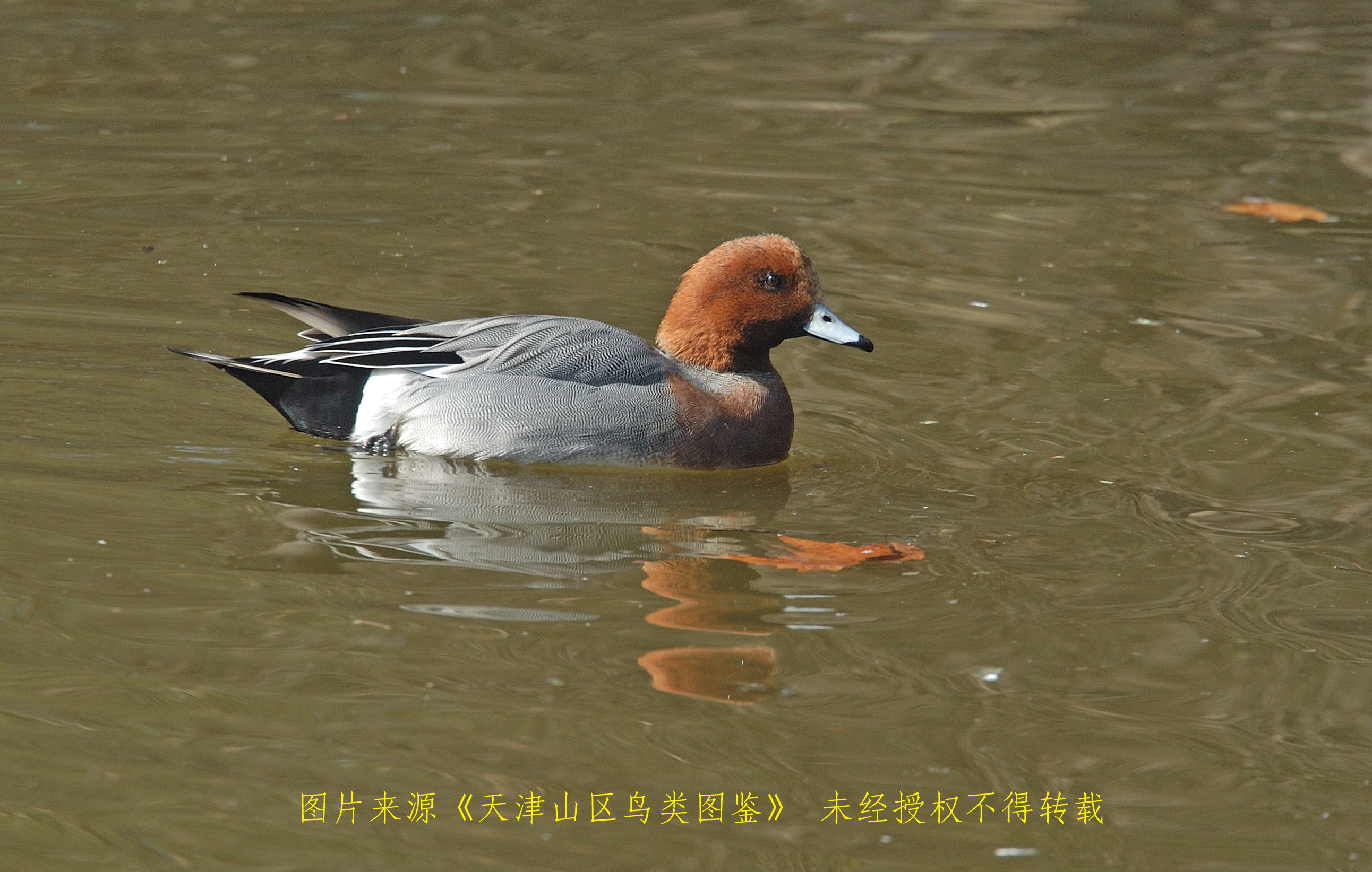 嘴短小,浅灰色,颈短。雄鸟头、颈棕红色,额至头顶有一乳黄色纵带,胸部赭石色。背、胁灰白色,杂以暗褐色波状细纹。尾下覆羽黑色。翼镜翠绿色,前后具黑色边缘。翅上覆羽白色,在体侧形成显著白色带班。雌鸟棕褐色,下体浅红褐色。